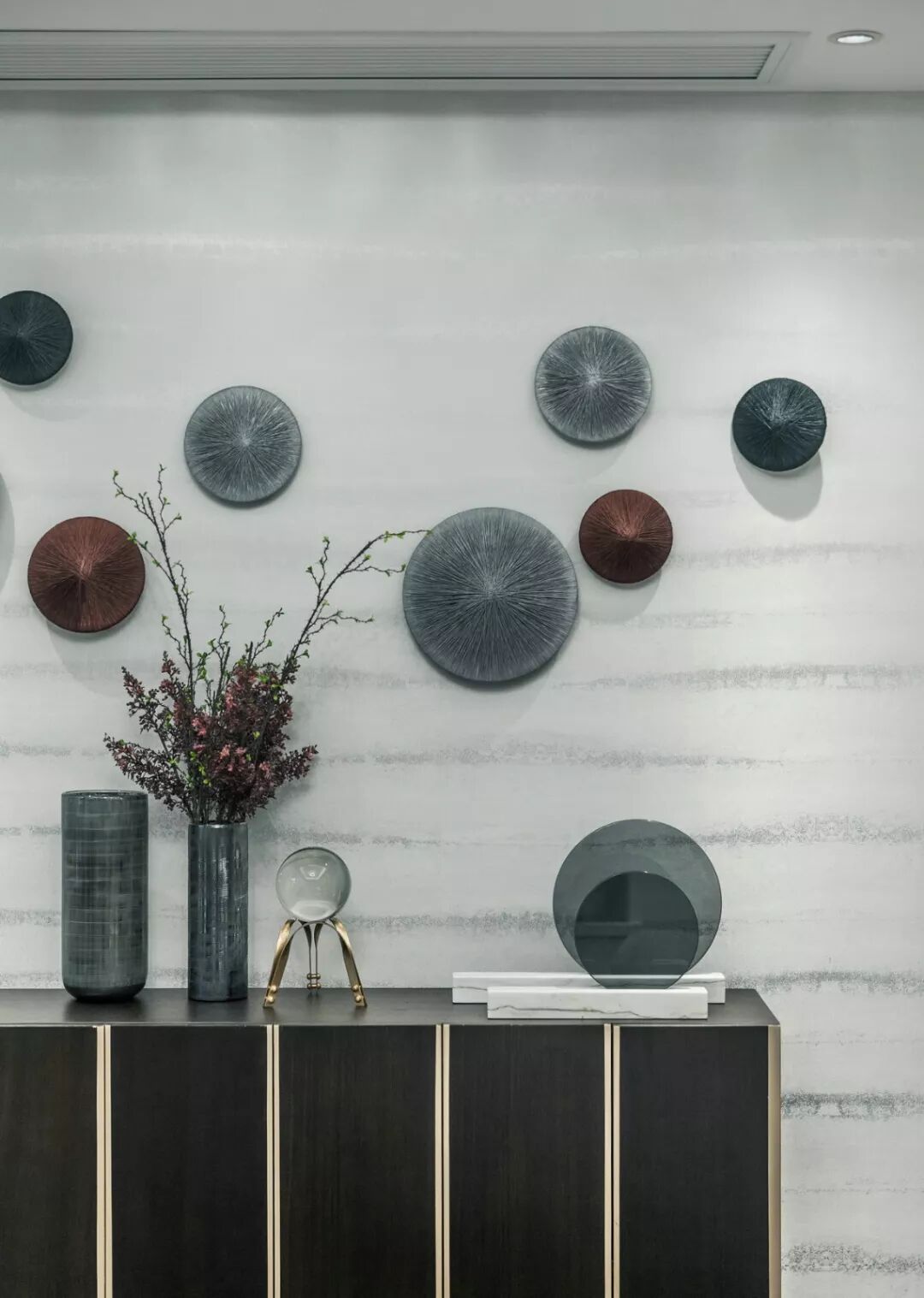 端景台分为展示性端景台和储物型端景台两种,其选择面较广,且风格多样,选取时最好配合家庭风格和实际需求,更有利于打造协调、整体的空间氛围,合理规划空间的观赏性。