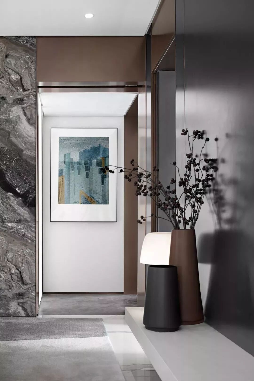 端景在室内设计中是指:在室内某处一端或一角用装饰材料和人工手法制造的景点。通俗来讲,就是人们身处一个空间第一眼就会注意到的“风景”。端景常见于走道尽头墙体或玄关、书房、客厅、餐厅墙面,以及阴角、转角、阳台死角处等。