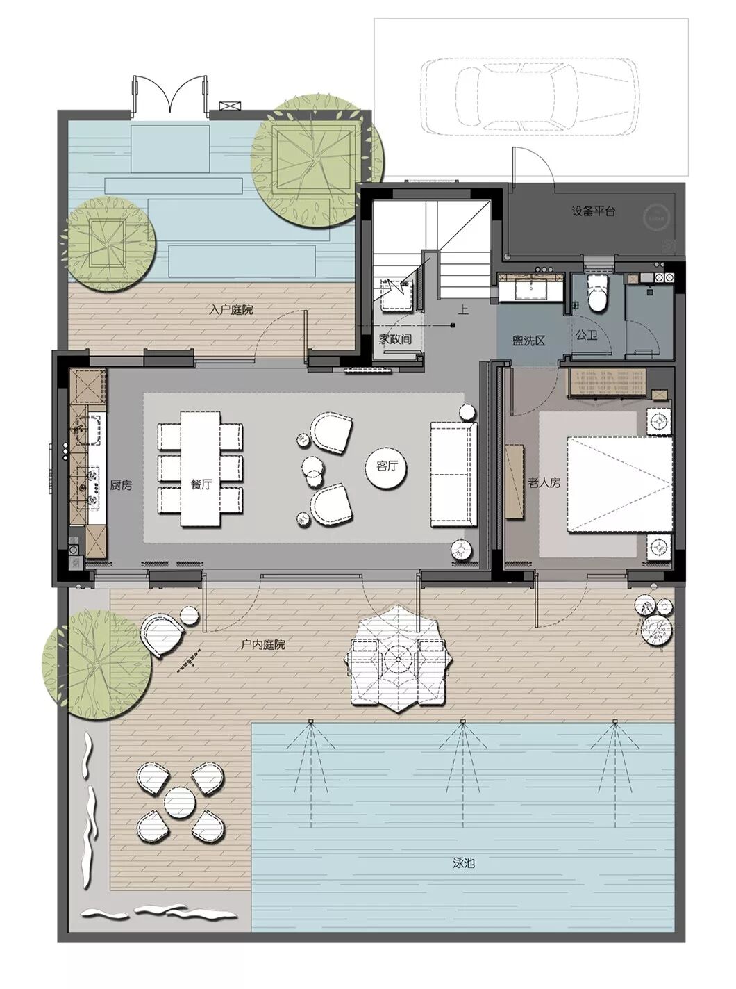 空间关系处理,留有人文画般的余韵,借由简明清雅的线条,勾勒出儒雅东方韵。