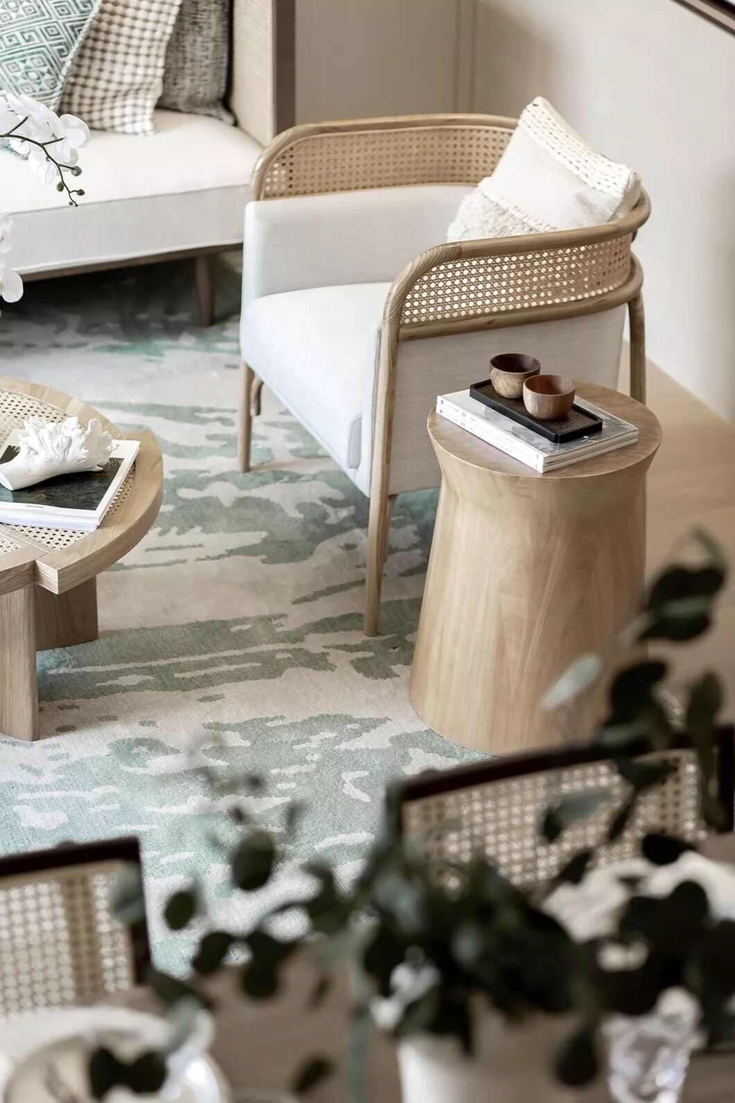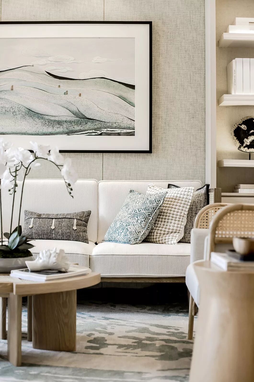 软装材料是以亲肤的棉麻搭配有质感的藤编,以木饰面为主的家具,局部使用了细腻的藤编,质朴且粗犷,空间的气质在静宁平和中脱颖而出。