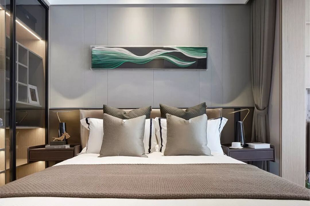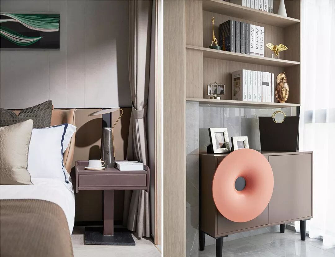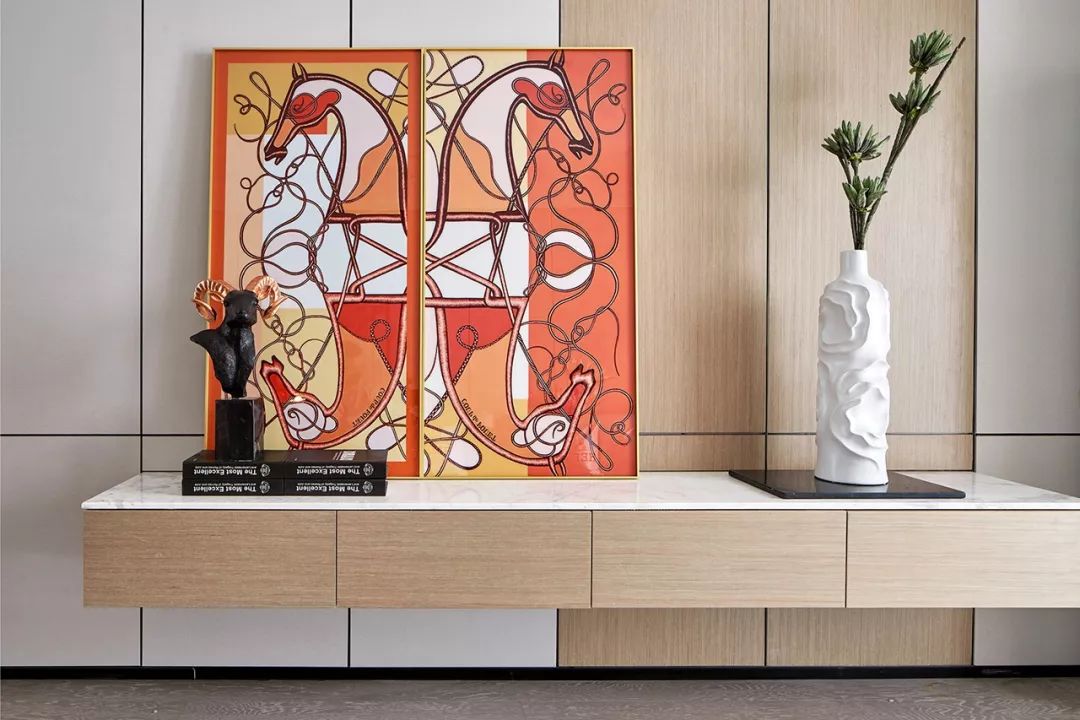 艺术以各种形态被融入到饰品、挂画、家具细节中,通过巧妙的构成搭配,形成雅致温馨的视觉符号转换到空间中,叙写生活的诗意浪漫。