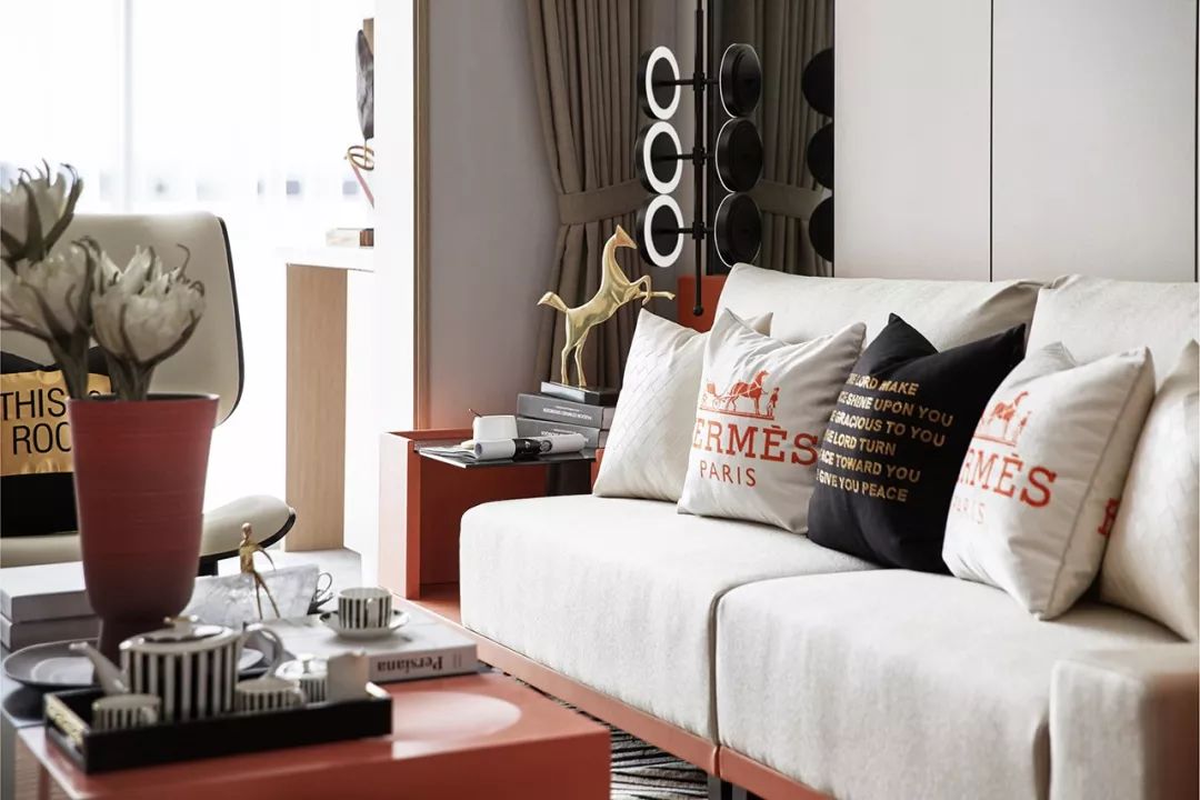 空间呈现活泼温柔的气质,橙色点缀其中,展现张扬与个性,勾勒出温暖的生活氛围。在阳光的调和下呈现微妙细腻的变化,流露出家的温馨与浪漫。