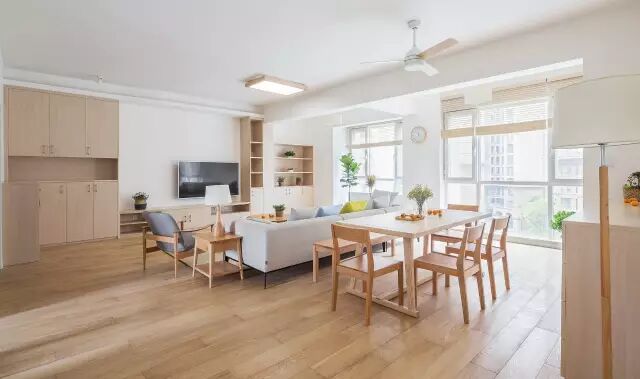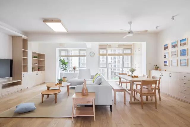 传统日式风格的装饰注重与大自然的交流,利用天然的材质营造出宁静致远之感。在这个案例中,设计师采用了纯天然的木质材料,透露出传统的日式气息,又融入了现代风格的简洁明快,打造了这个120平的超清新越简约的家!