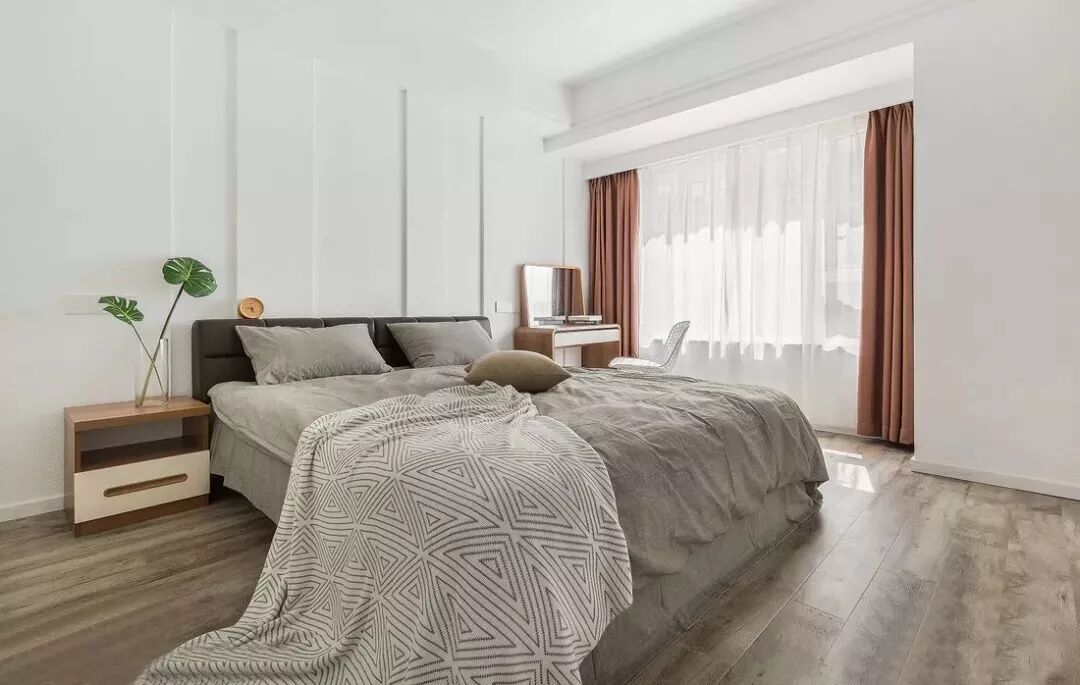 ▲ 床品的灰度恰到好处,营造宁静舒适的睡眠氛围。一抹绿意如此醒目,带来清新自然的味道。
