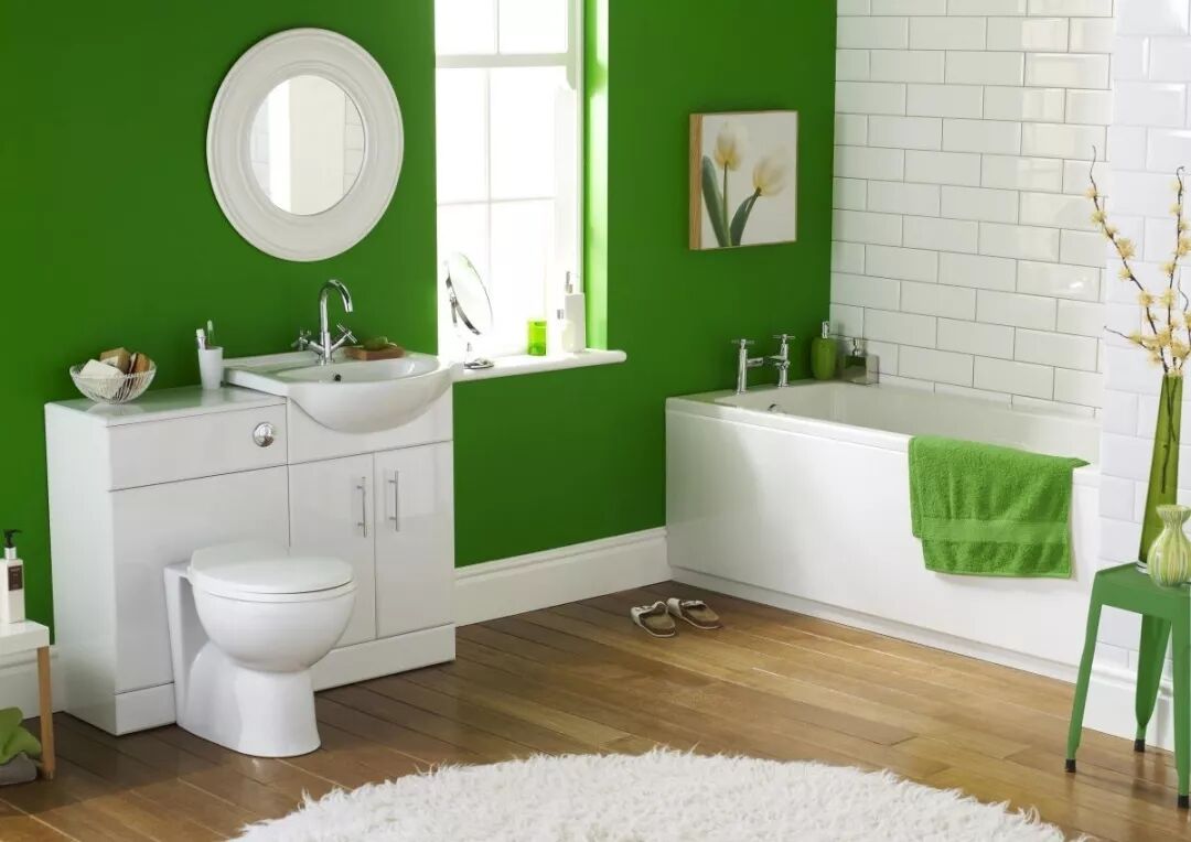卫生间温暖潮湿如同温室,所选的绿色植物要喜水不喜光,而且占地较小,最好只在窗台、浴缸边或洗手台边占一个角落。