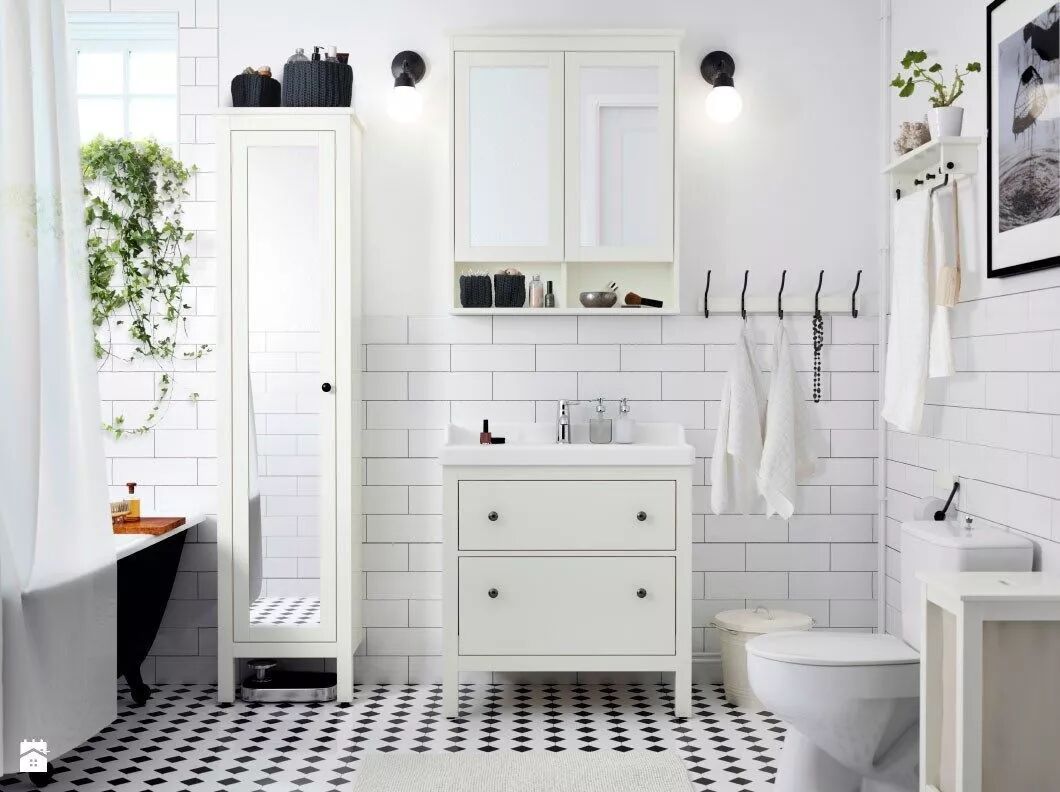 绿色植物与光滑的瓷砖在视觉上是绝配,给沉闷的卫生间带来生机和清新的空气。