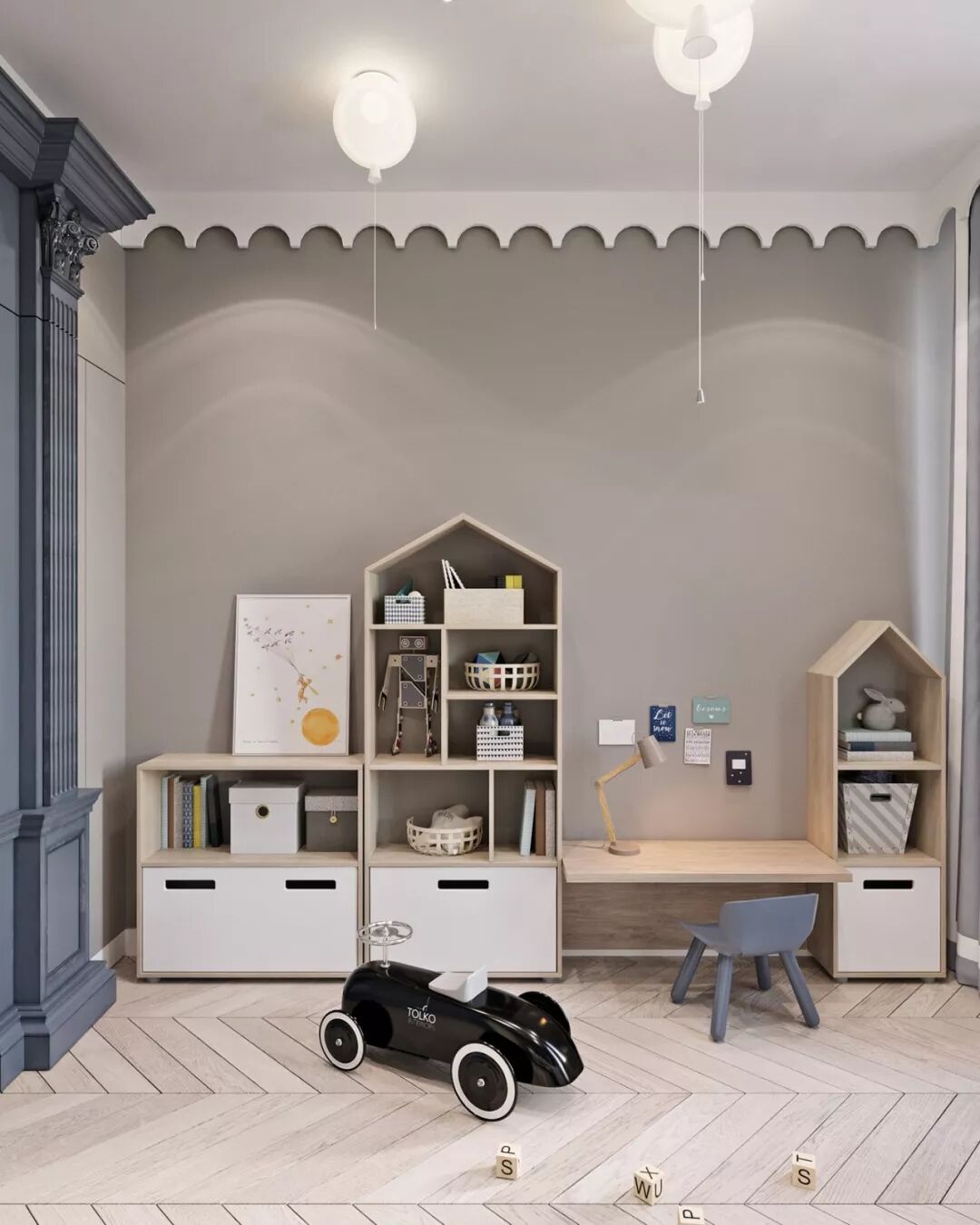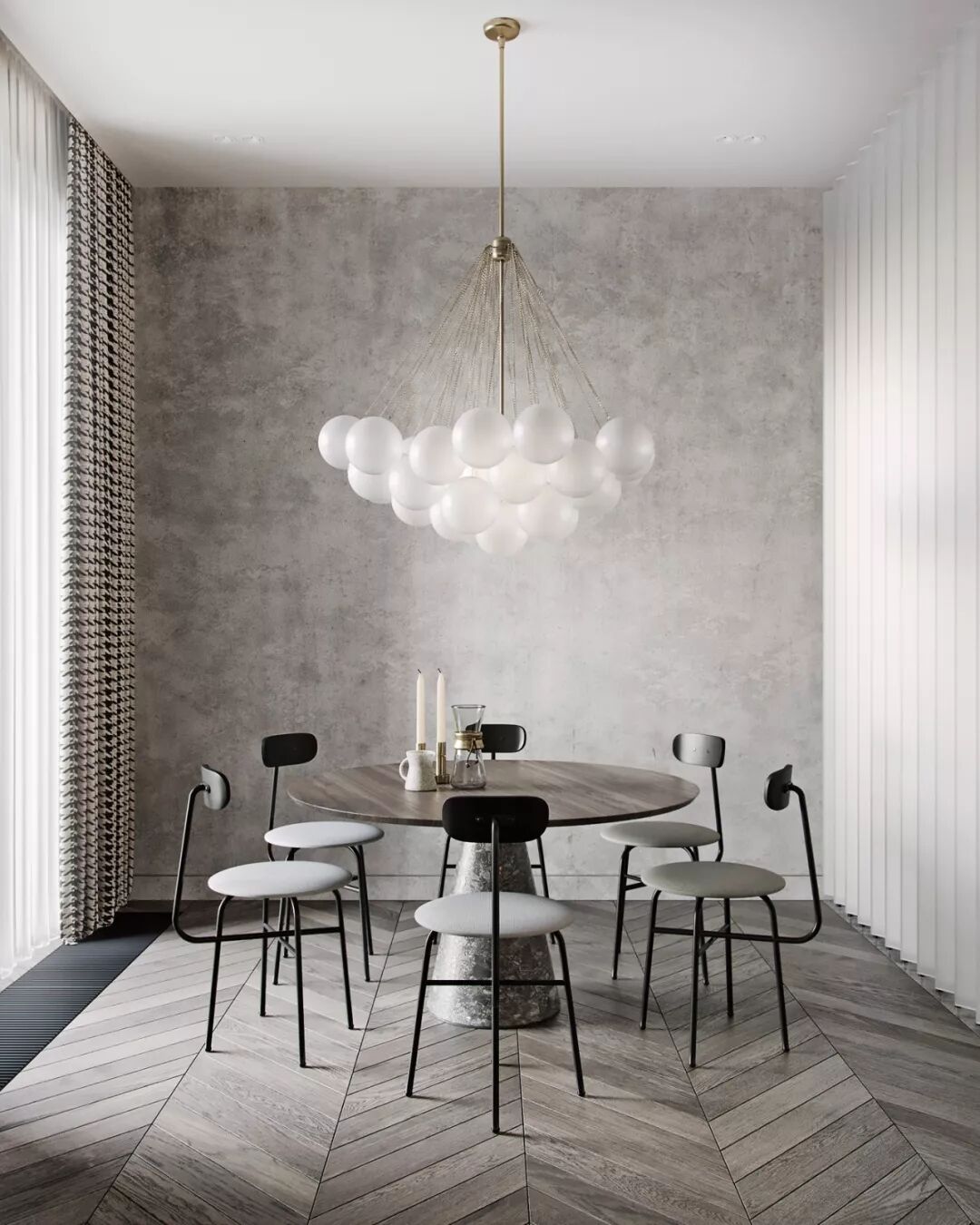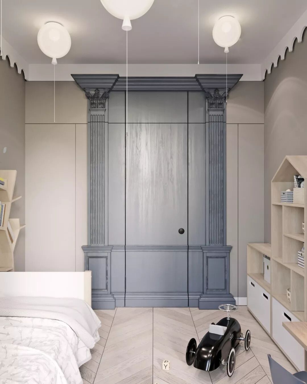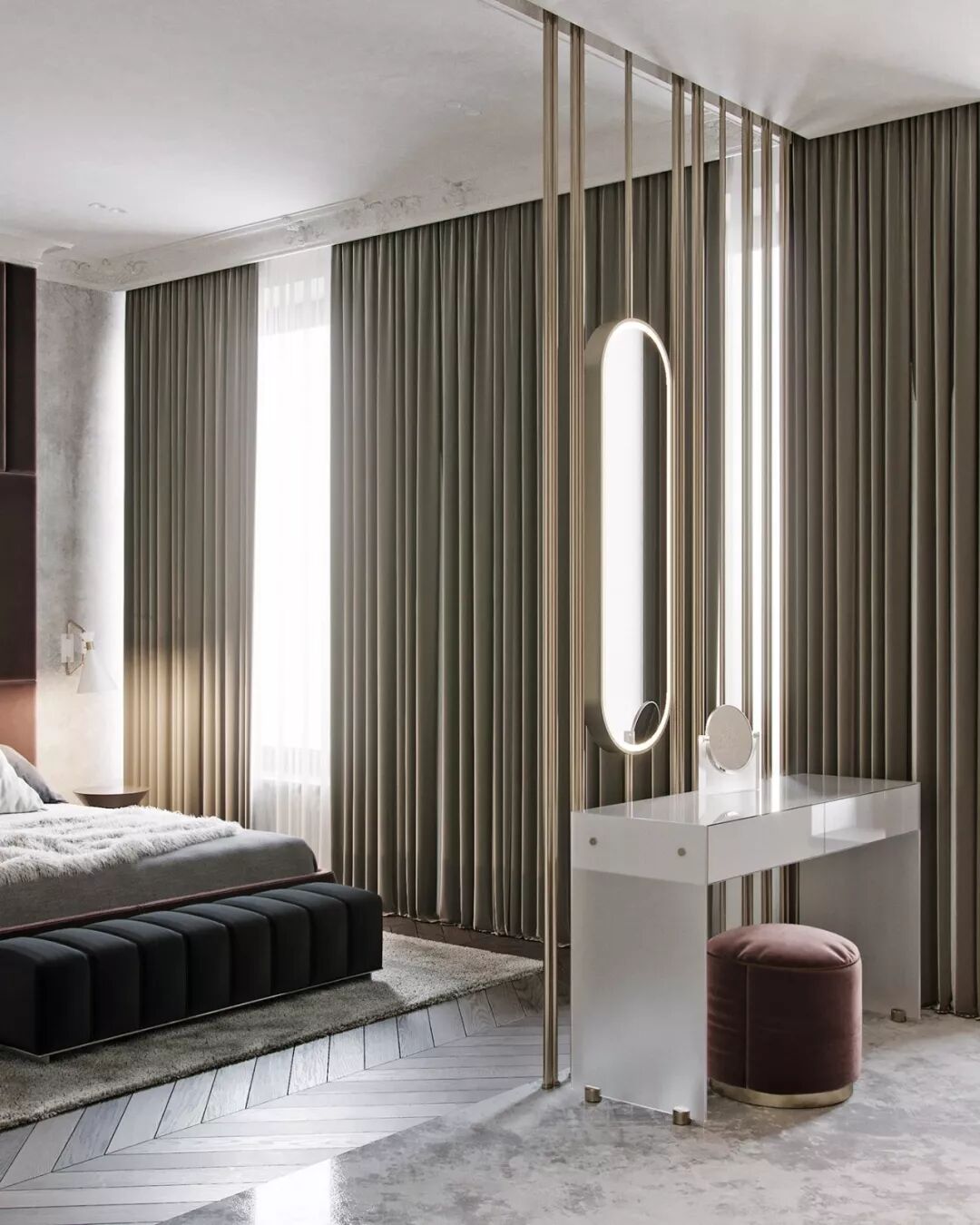 门厅地面采用木纹砖和石纹砖拼贴设计,