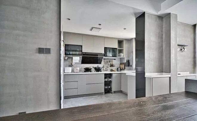 带着这样的想象,在进门那一刻,被这样清爽别致的水泥灰装修惊艳到了!