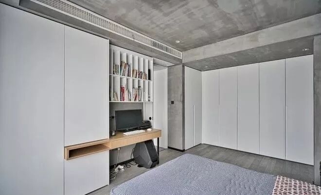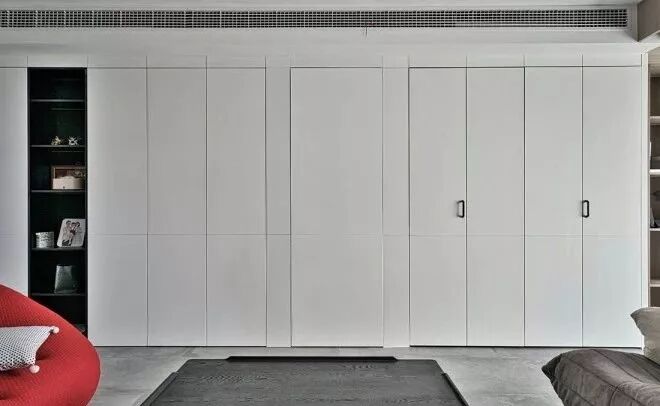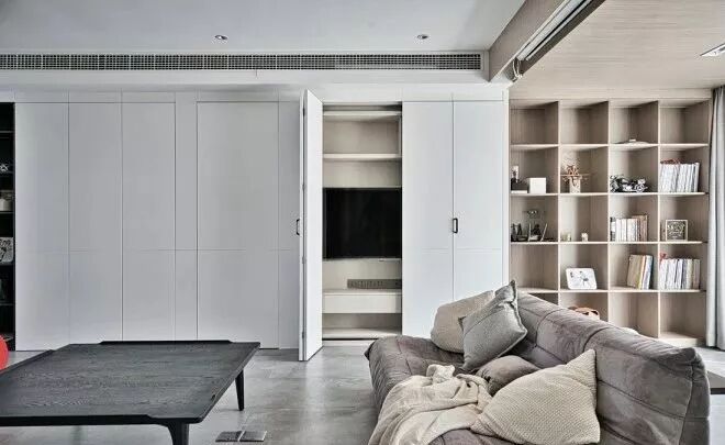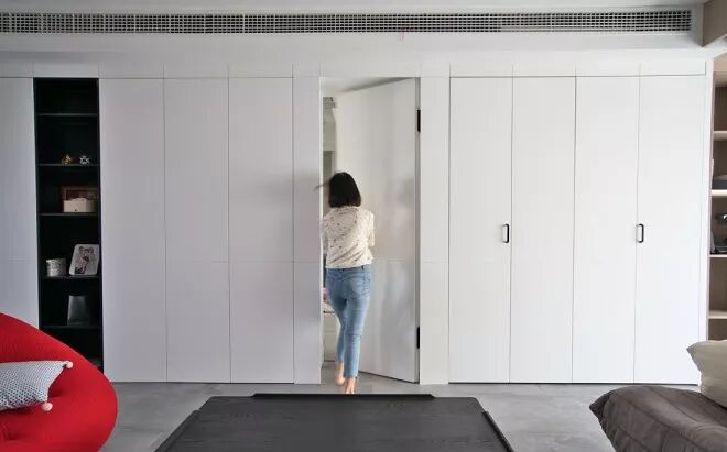 隐形门与隐藏式电视柜的做法,更是将柜子、墙面一体的极简艺术做到了极致,这是专门针对极简爱好者的特殊设计。