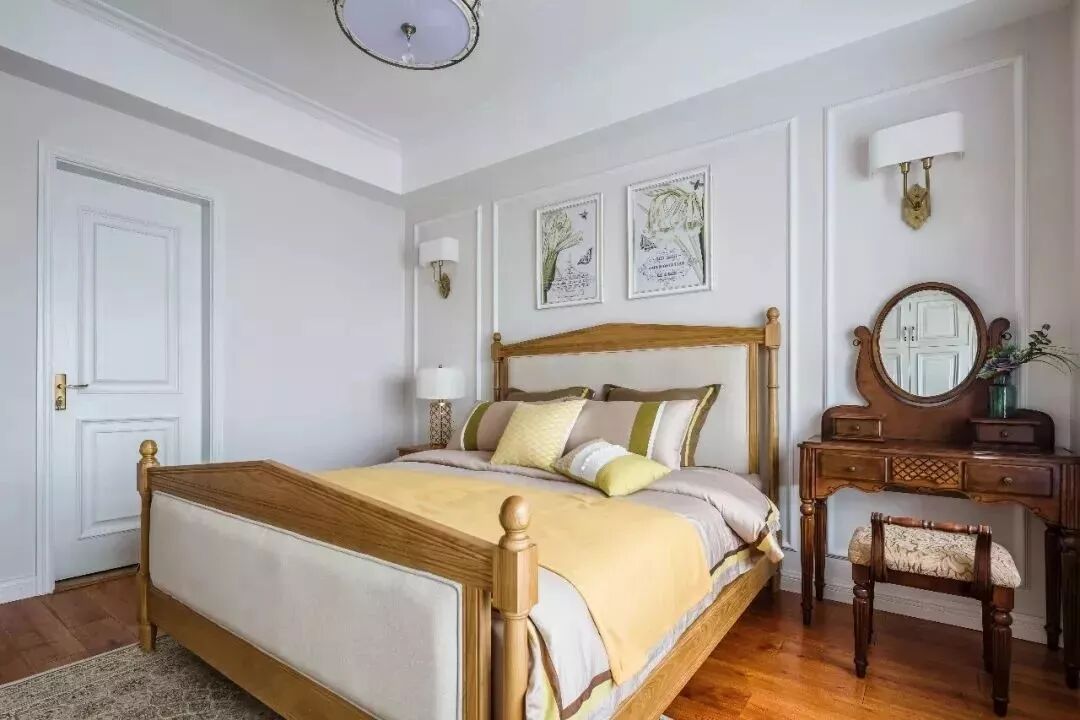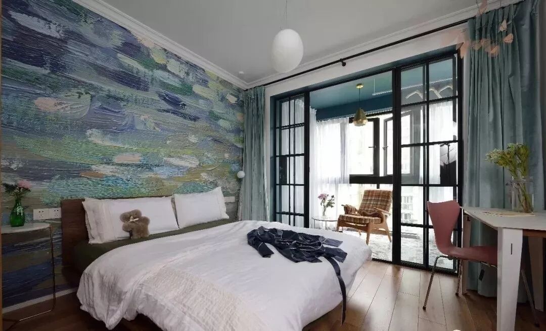 卧室充斥着印象主义画风,相信女主人心中一定有一片莫奈油画里的池塘,并且把它铺到了整面墙上。