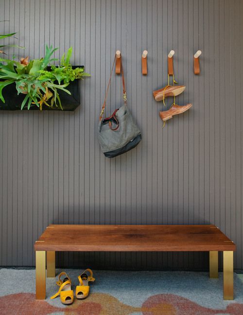 如果挨着门无法设计鞋柜,可以看侧面墙体是否为承重墙,如果不是,可以拆除部分墙体,做成通顶的柜子,下面鞋柜,上面挂架。收纳超级强大。