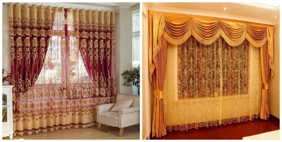 窗帘也是客厅变“丑”的重灾区。我们很容易被商家忽悠而“失去”鉴别力,或者被一些表面的花色所迷惑。从而选择那些造型浮夸、色彩艳丽的窗帘(如下图),成功毁掉一屋子的精致。