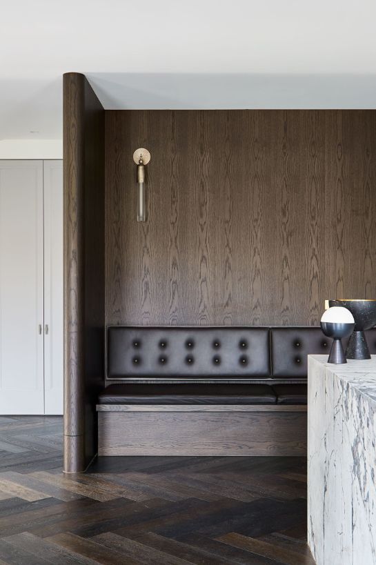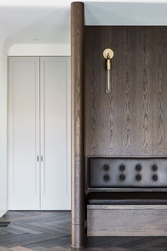 休息区的黄铜壁灯配上皮革的座椅