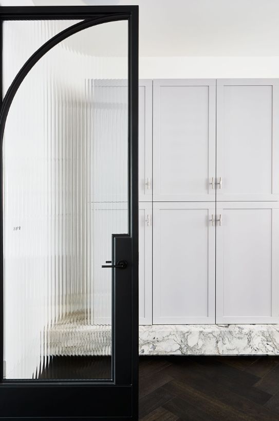 黑框透明的玻璃门后方是一个储物间