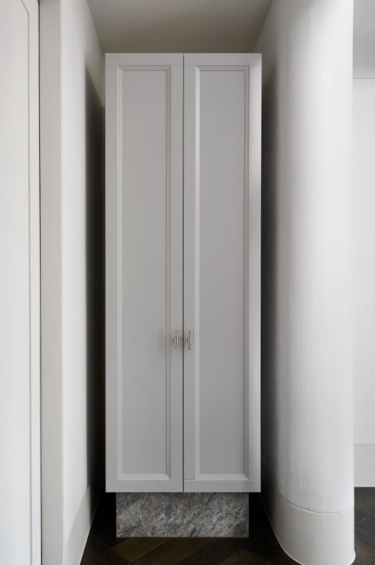 在储物柜的下面是大理石石板作为支撑