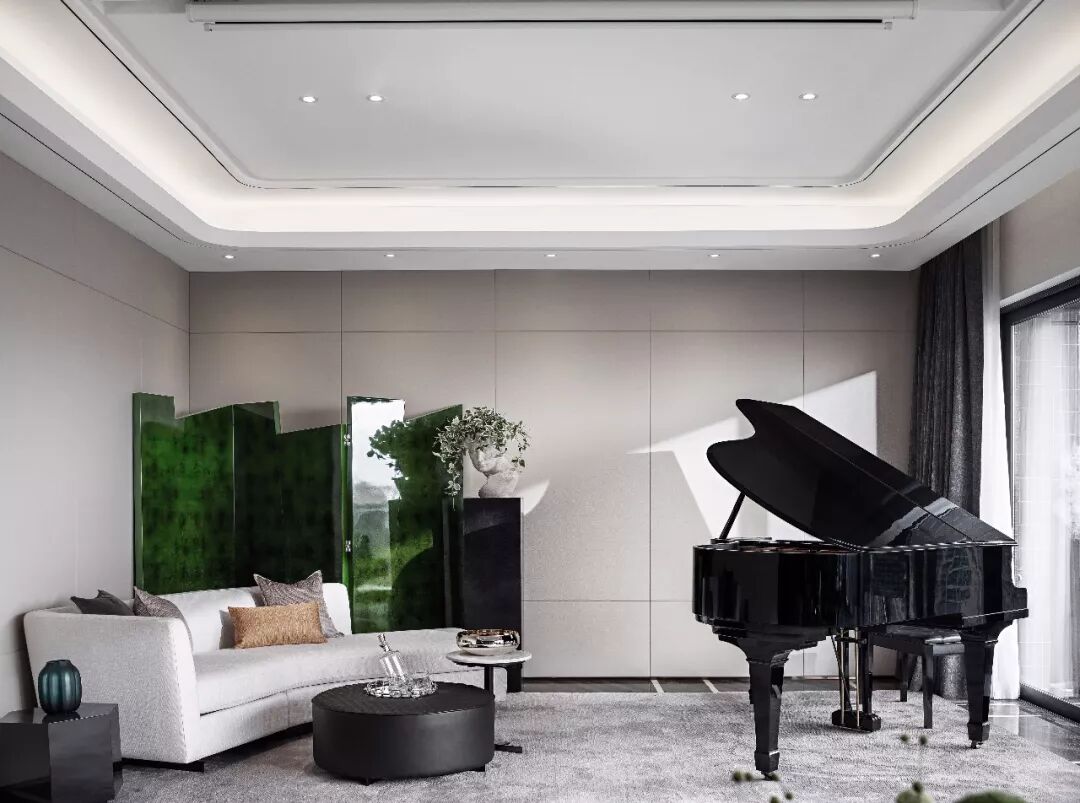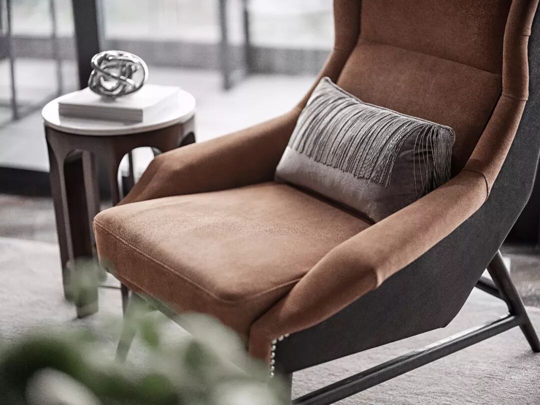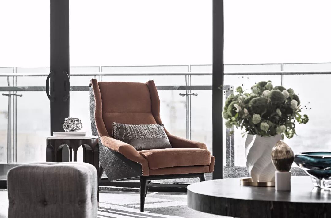 无论是会话区还是休闲区,这些柔和且美好的曲线,与大自然的清新相结合,给观赏者一种优雅私密的体验。饰品选择上多选择通透的玻璃艺术品与金属元素,渲染出明亮时尚的氛围,家具强调造型的舒适性和包容感,面料和皮革材质精致考究。