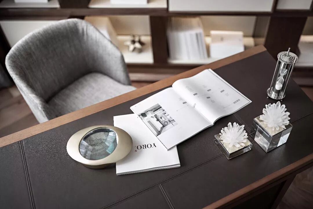 相比得以彰显个性的客厅、卧室场景,书房则是更加私密的个人空间,让主人能从日常中跳脱出来,让心绪有片刻的休憩。书桌不必中规中矩地贴墙,摆在房间斜角最易走动的位置,自由的活动空间提供放松的舒适感,也是营造现代感书房的要义之一。