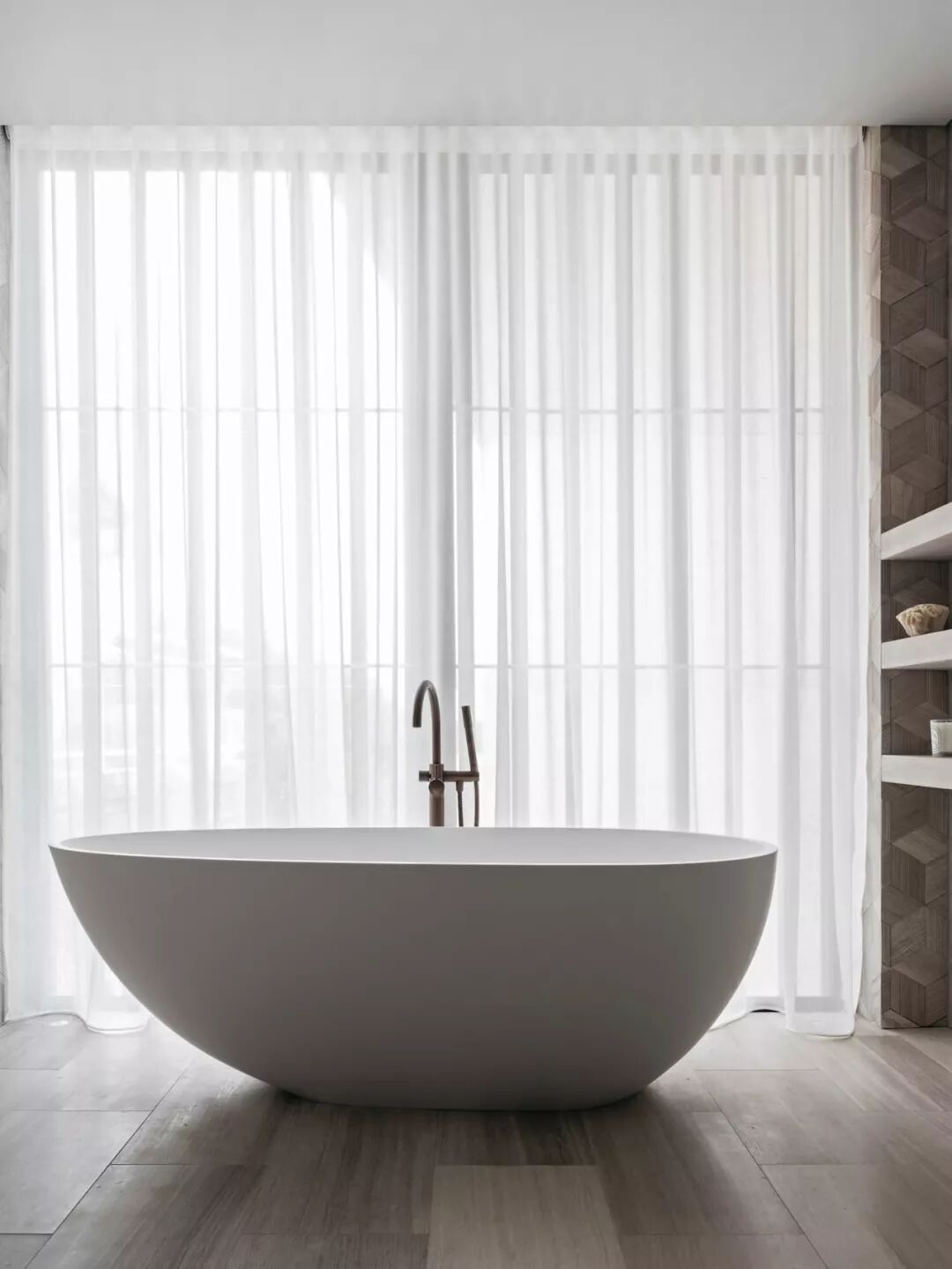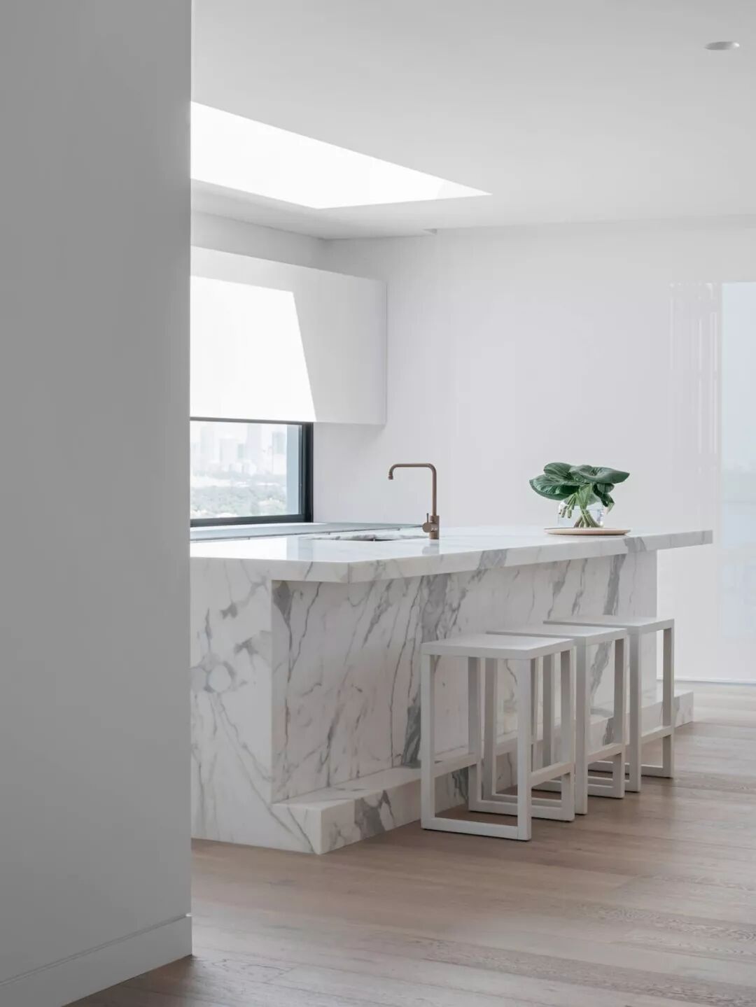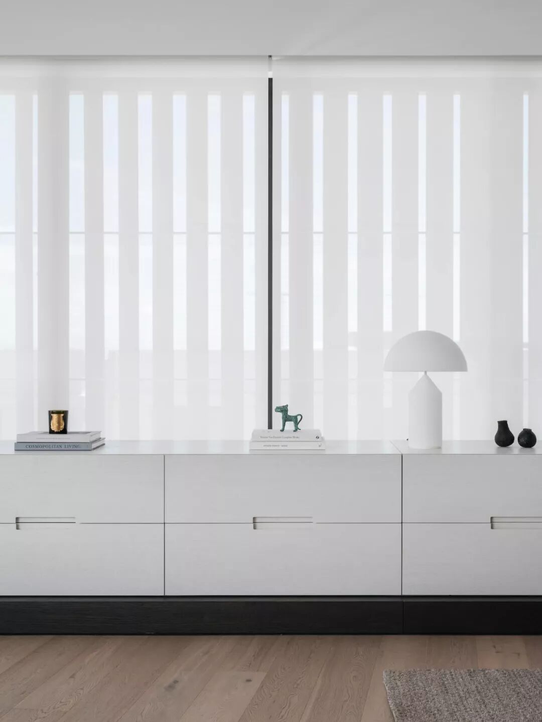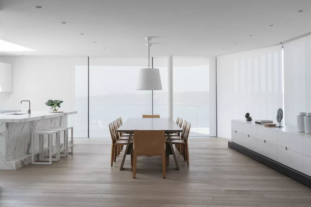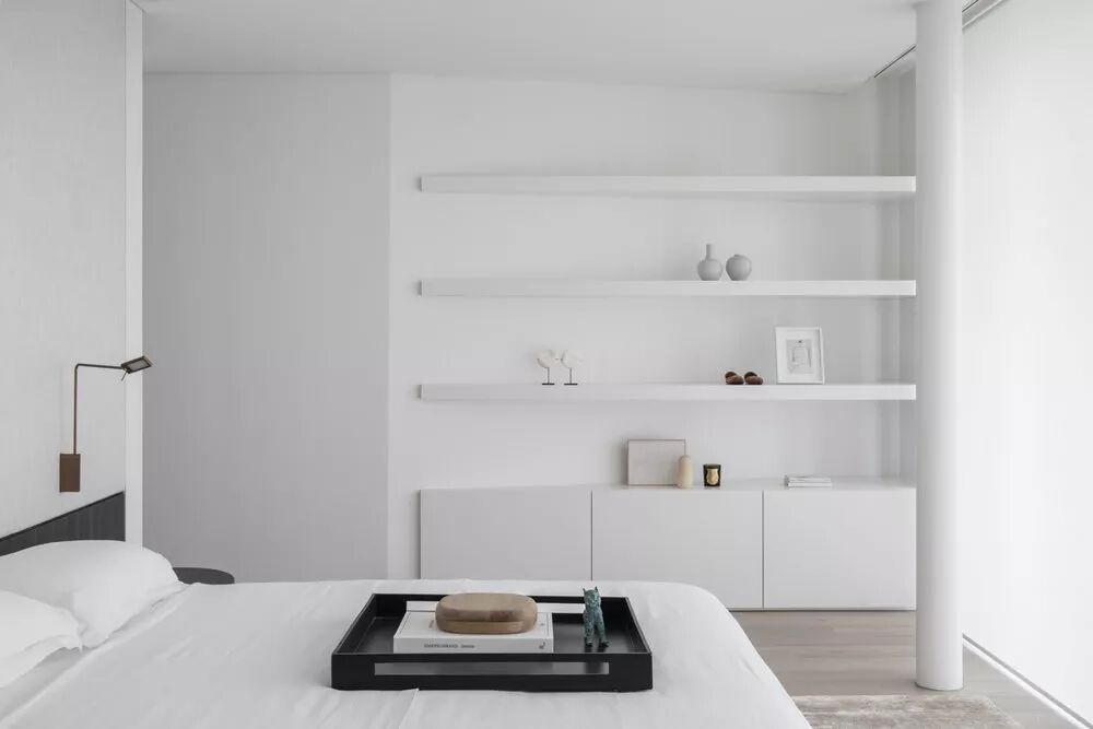 窗边 12 米长的白色矮柜完美解决收纳问题