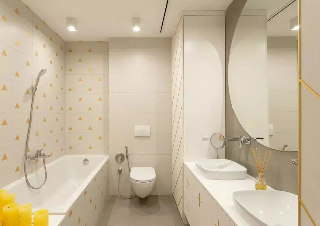 ▲次卫里装了大浴缸,墙面黄色的小碎花图案,使得小空间充满了精致的童趣,为孩子们提供了轻松舒适的卫浴体验。