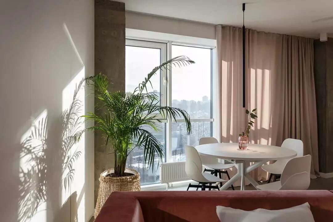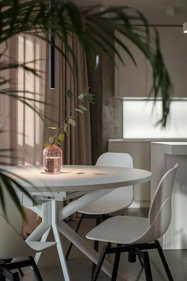 ▲雅白的餐桌椅,搭配粉色的窗帘布,呈现出一个优雅情趣的用餐氛围。