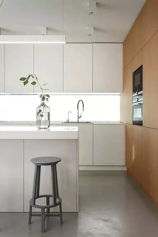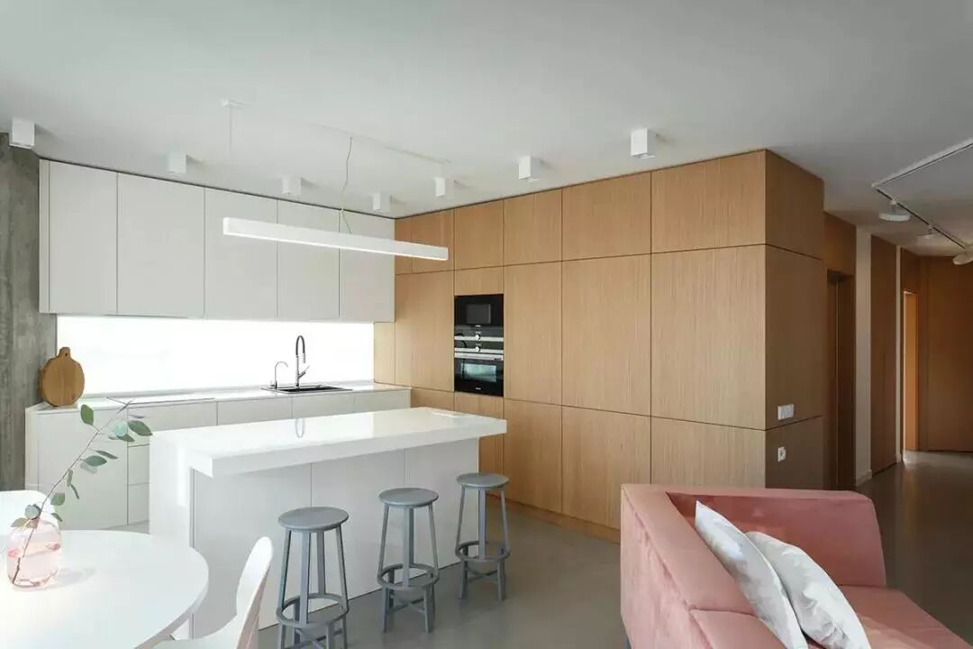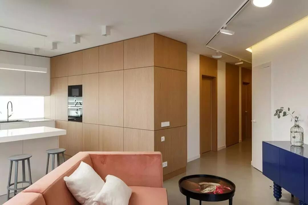 ▲木质感的柜体与门板,结合净白的墙面空间,呈现出一个舒适自然的空间感。