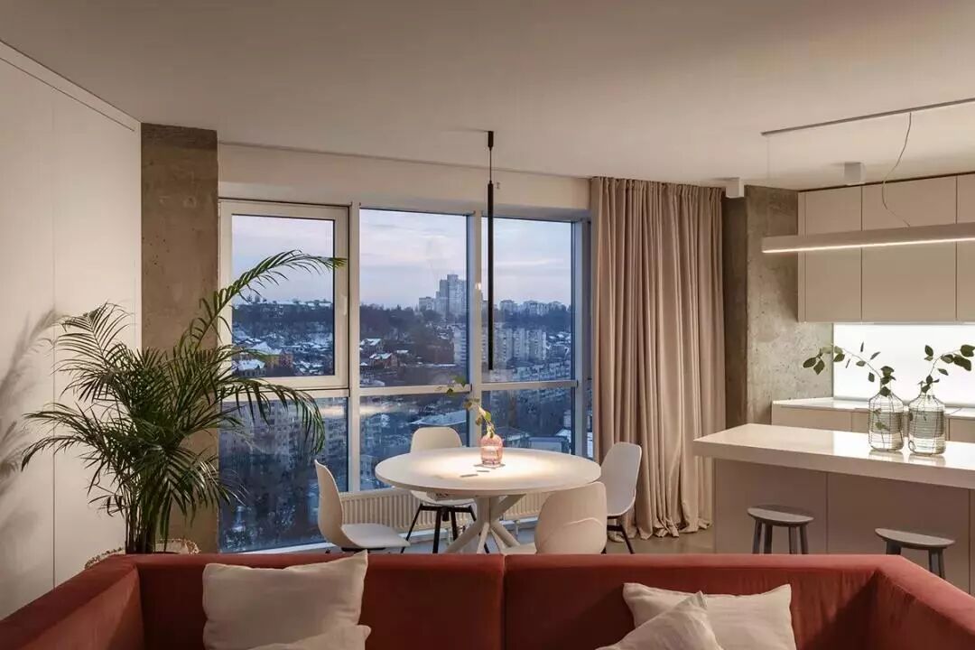 ▲餐桌设置在沙发后方,是个临窗的位置,坐在这里用餐,能坐享窗外的城市风景,使得生活充满时尚的气息。