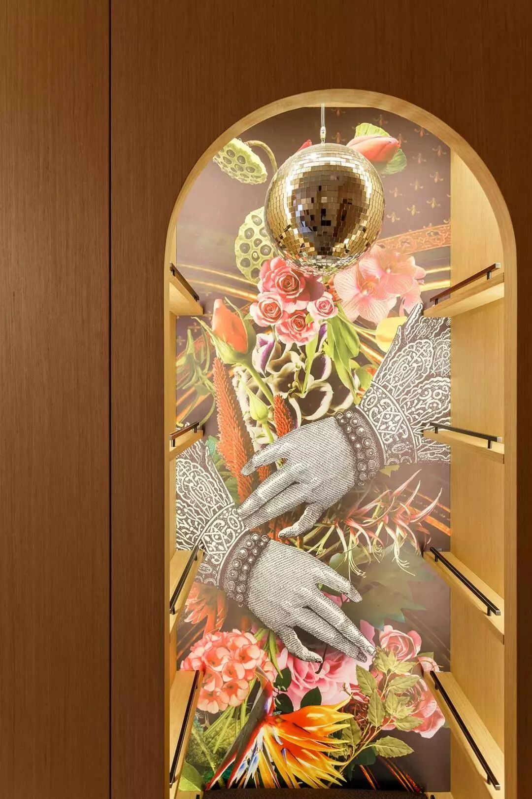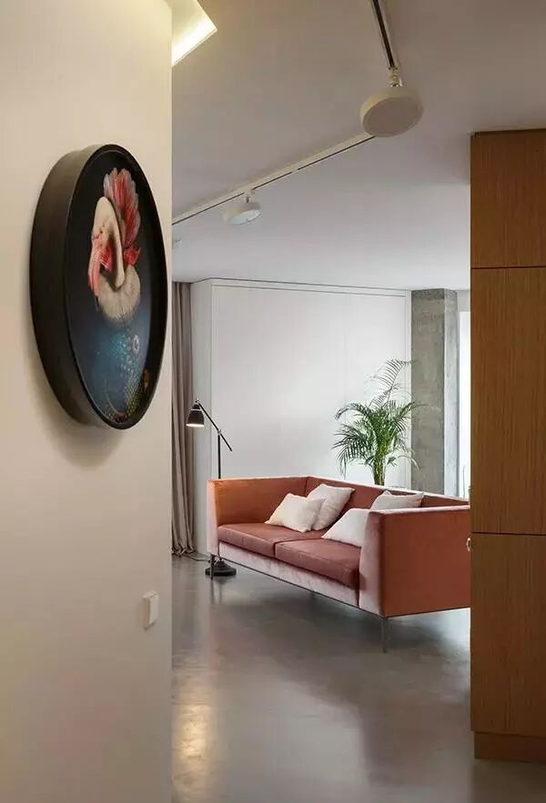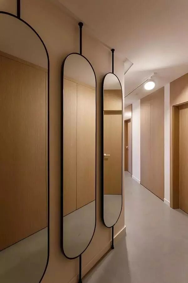 ▲玄关上挂了三面椭圆形的精致,以木质的空间饰面板墙面,整个空间都显得现代自然。