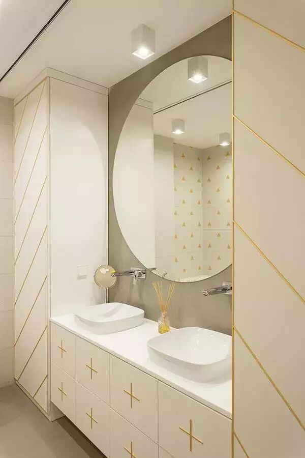 ▲洗手盆与侧边的柜体上都加入了铜色的线条,让空间显得更加档次优雅。