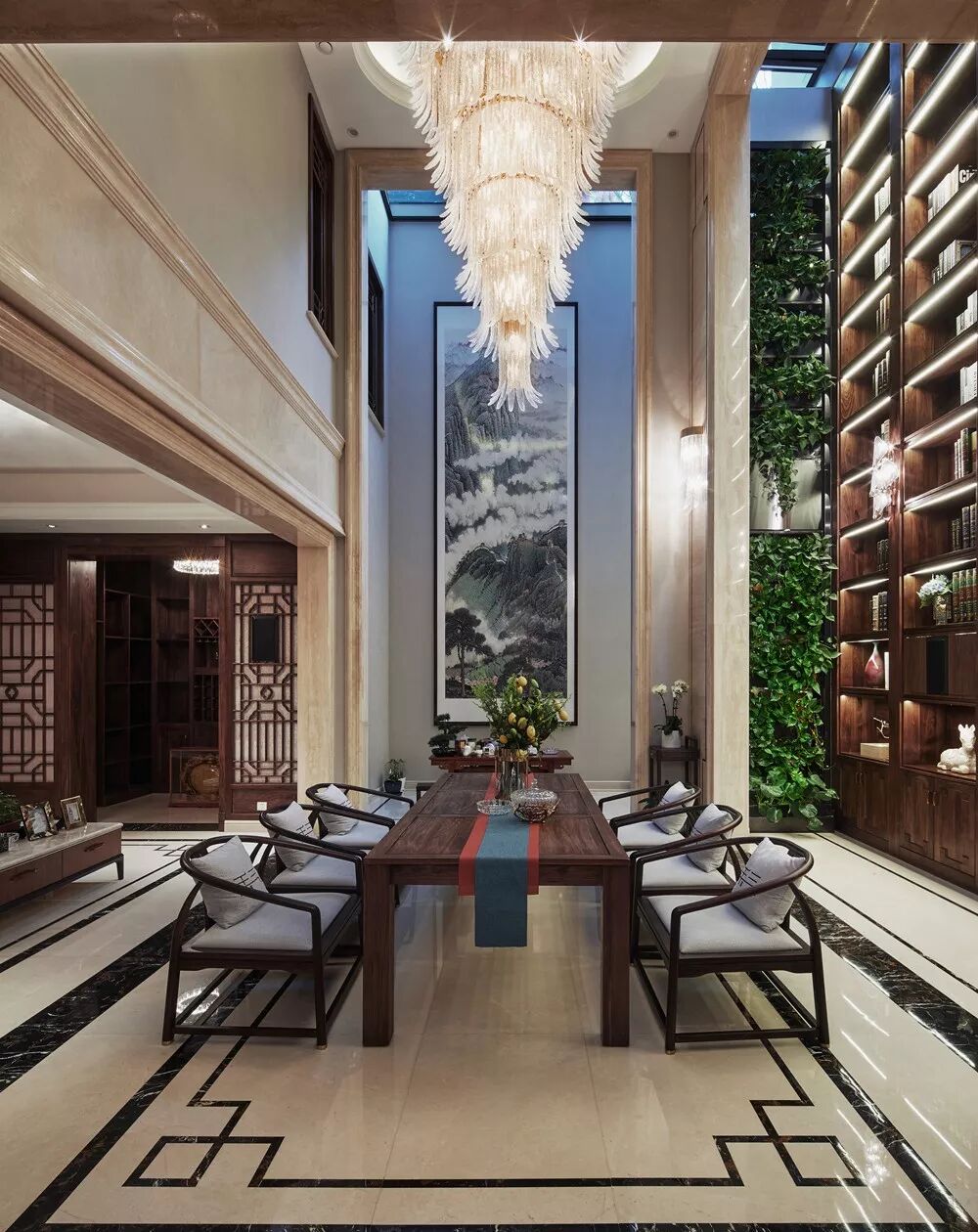 460m²现代中式大宅,娴静温润的“茶韵”空间!