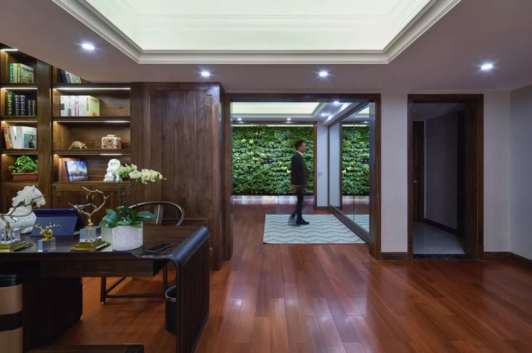 随着科技的发展,智能家居得到越来越多追求品质生活的人们的青睐,已经越来越普及。本案中将植物墙与书柜结合,不仅巧妙的利用了地下大空间中采光最好的位置,而且运用智能自动系统进行养护控制,操作简单又打理方便。
