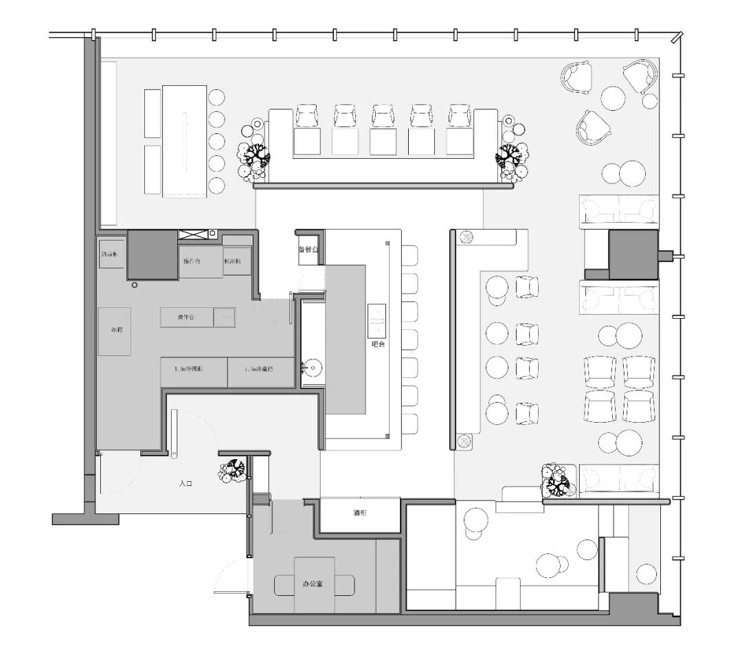 如果说,食物在其本身应处的环境会发挥最大的品质。那将味觉视觉听觉融合在一起的用餐体验想必会触及灵魂引来回响。项目本身位于高层,能俯视海洋,平视深圳高楼。这种奇妙的视觉体验使得餐厅本身如悬浮的空中楼阁。