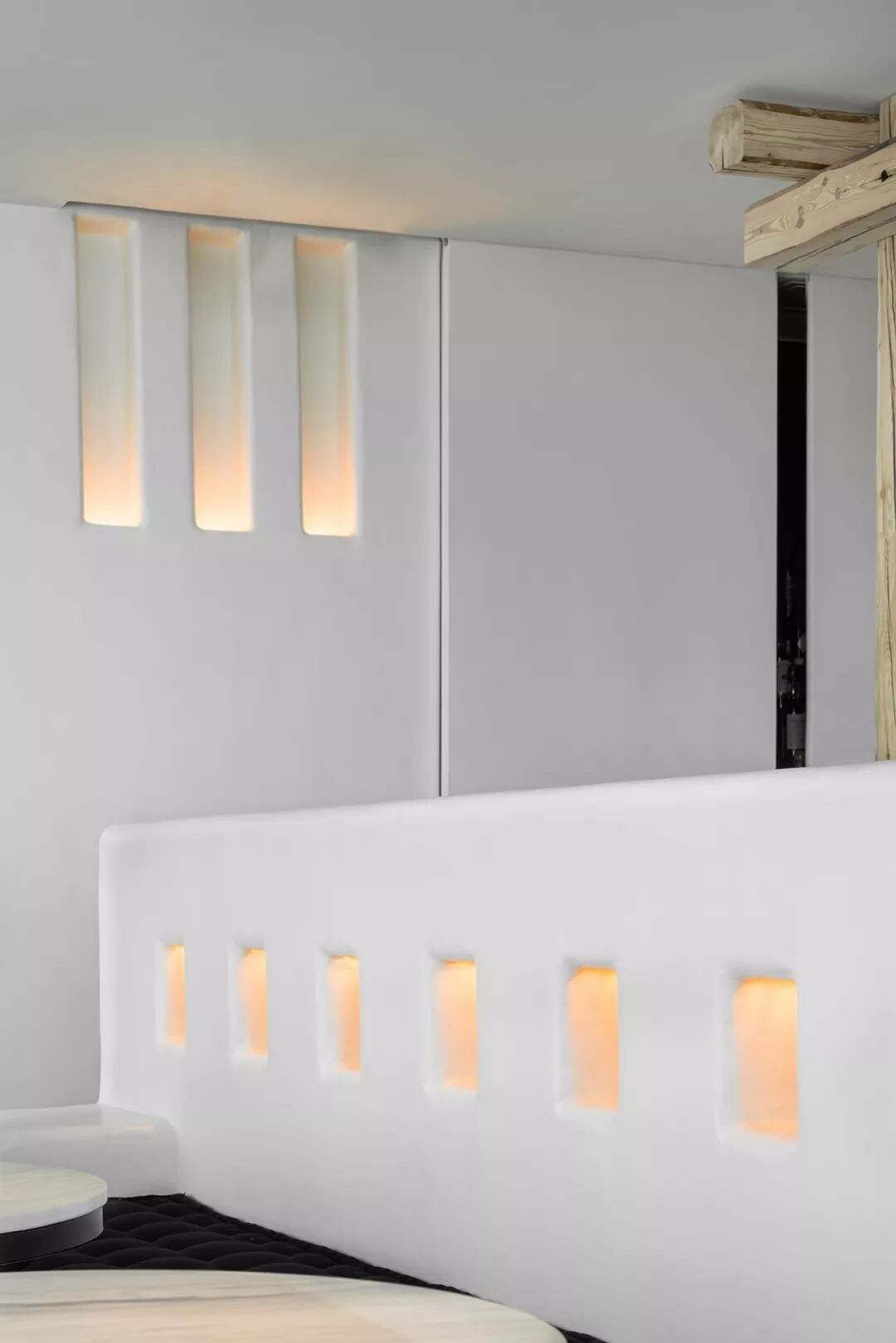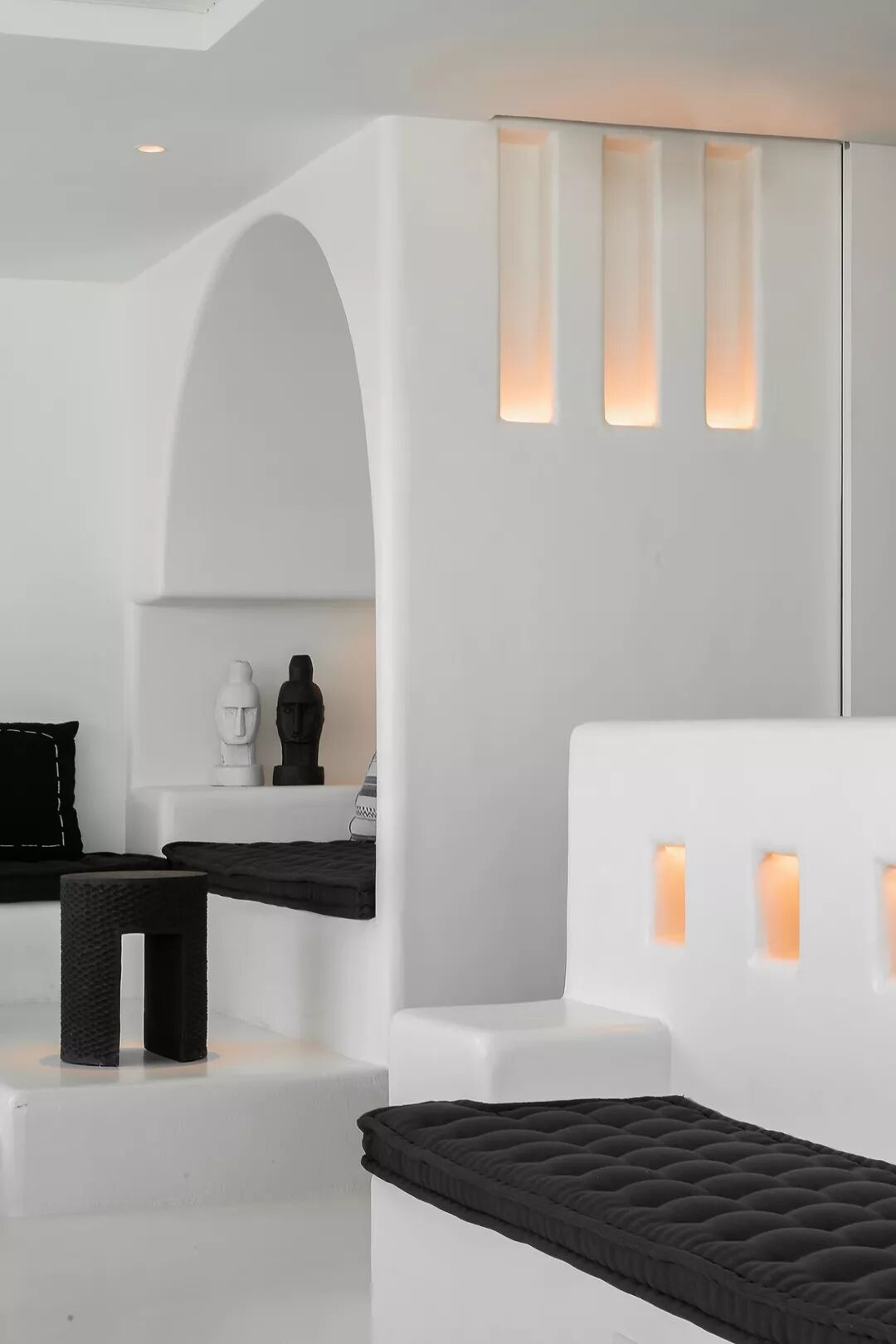 ▼座位区,隐藏于墙中的灯是最好的陪伴