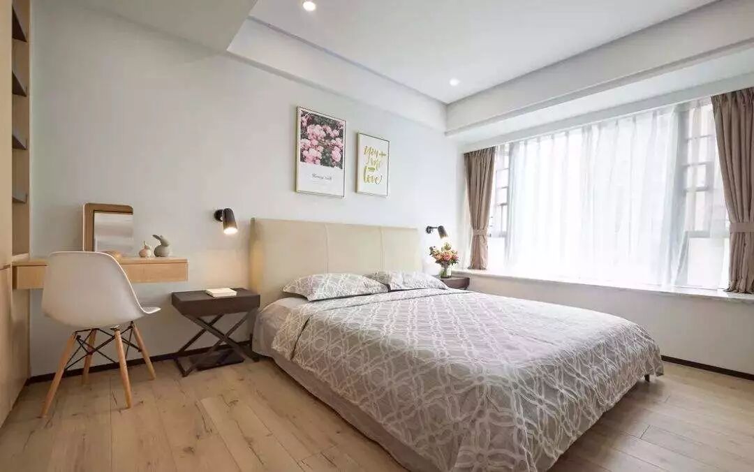 摆放简单,和床的比例协调就行,不仅用起来方便,看起来也很清爽;