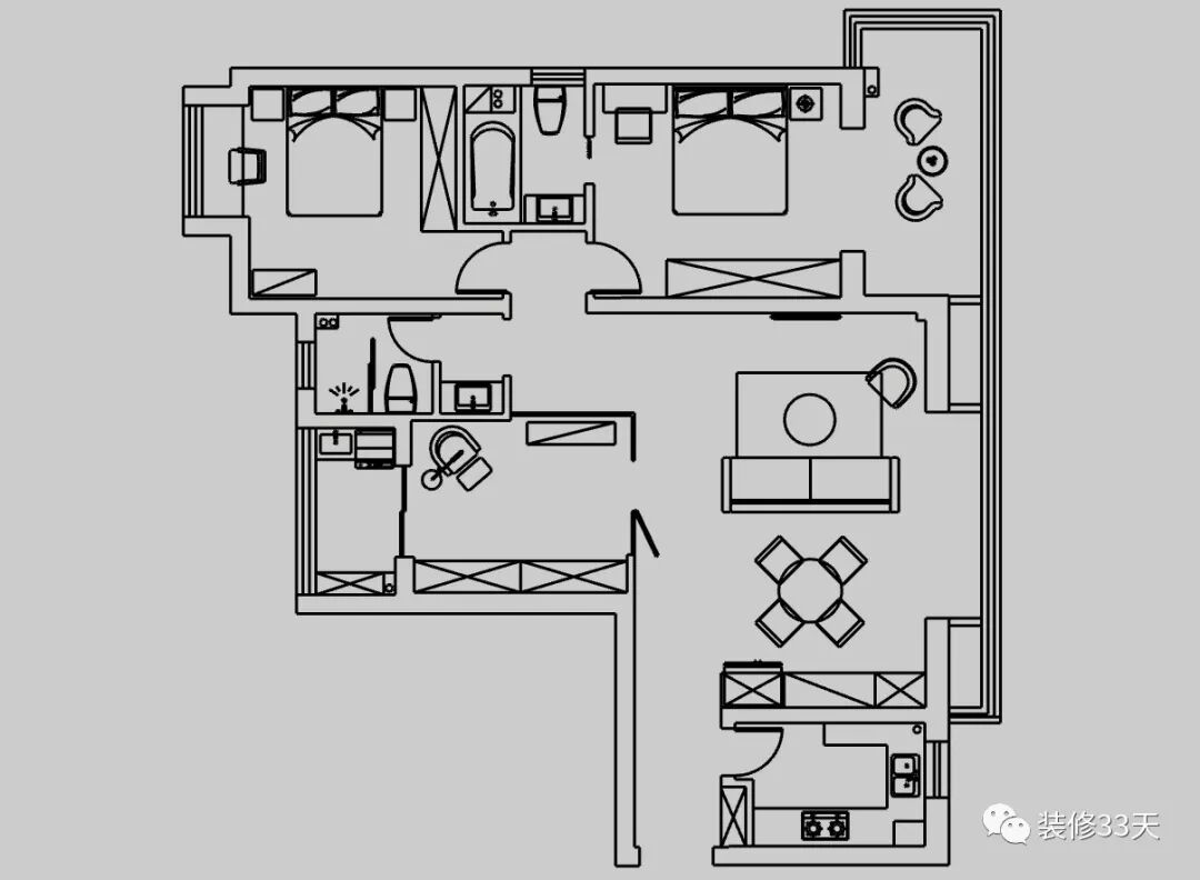 ▲ 由于厨房墙面为承重墙,无法做开放式空间,在餐厅这边设计出西厨区域,方便客餐厅简单的料理操作
