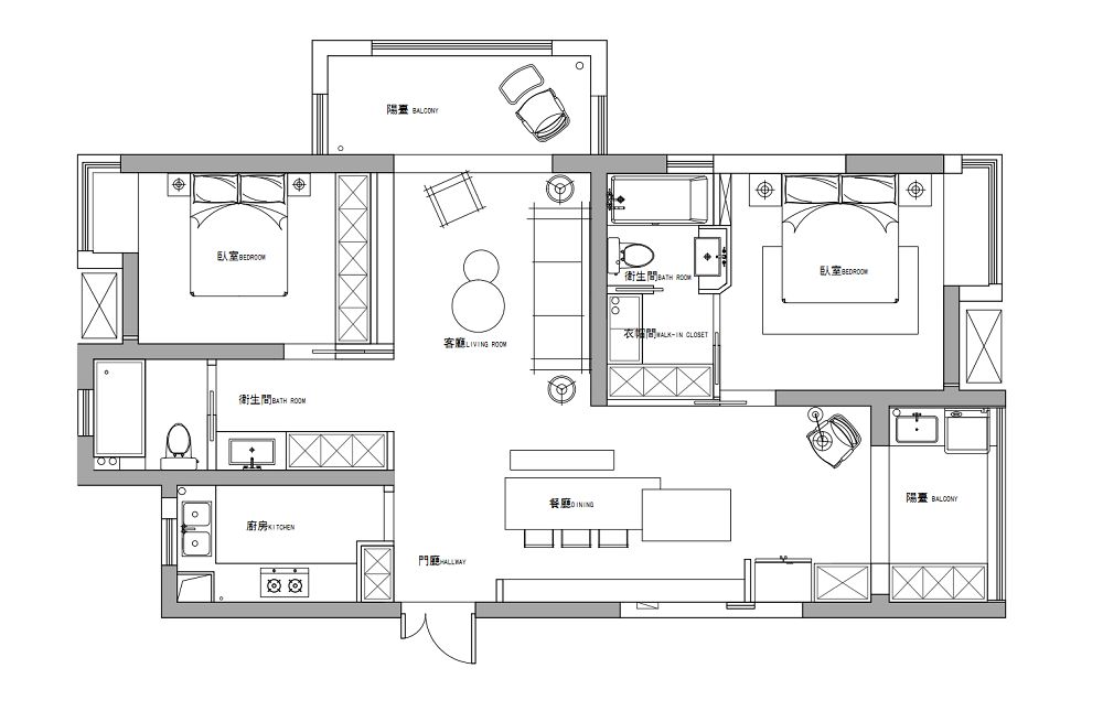 本案为高层住宅公寓。原始户型为两室的结构,根据使用者的需求,我们对室内空间的结构重新做了整理排布。