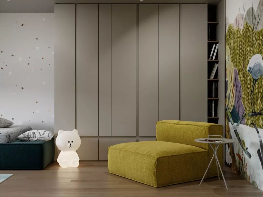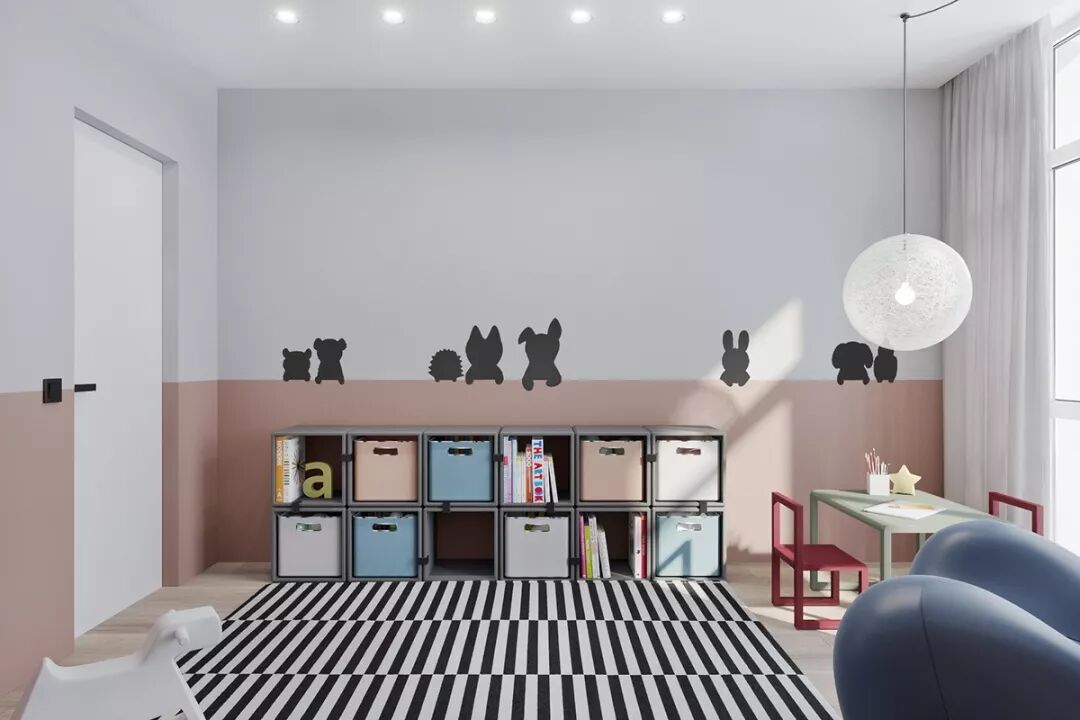 家具尽可能靠墙,留下足够多的活动空间。一般2-4岁孩子是秩序敏感期,这个时期正好是培养宝宝秩序感、规则感、自己动手能力的黄金时期。可以使用一些带滚轮的玩具收纳箱,贴好标签,从这个时期开始,引导孩子自己整理玩具和房间。