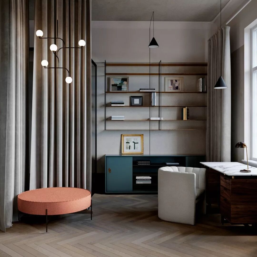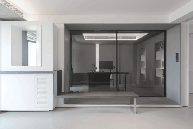 抛弃复杂的缀饰,用最纯粹的墙、家具、地板和天花表现空间层次,直白却惊艳。