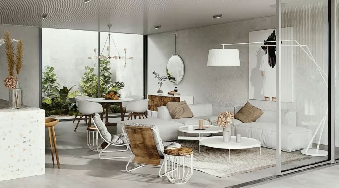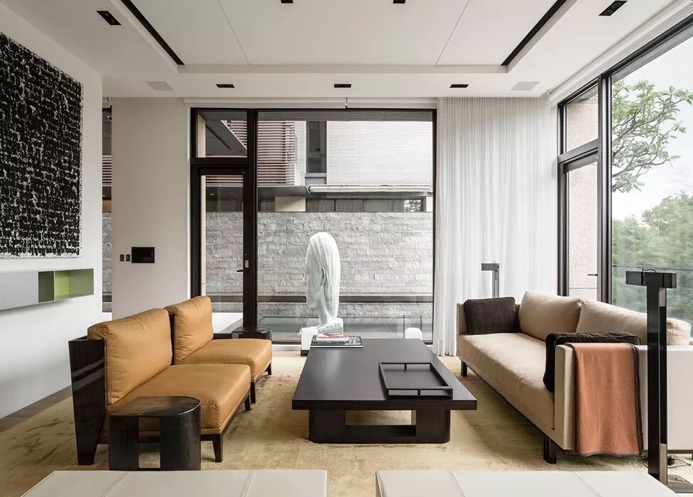 无论是令感官更加宽广的开放式布局,还是完美沟通室内外的大片落地窗,或抑或是复刻空间的光滑镜面,都能够大大加强空间的通透感,赋予房子更轻盈的体态。