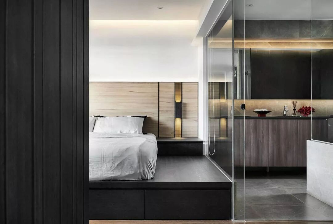 地台有一个很重要的作用是区分空,,因势利导,营造氛围。如茶室、书房、卧室等,使用地台可从视觉上很好地营造出相应的性质和氛围。