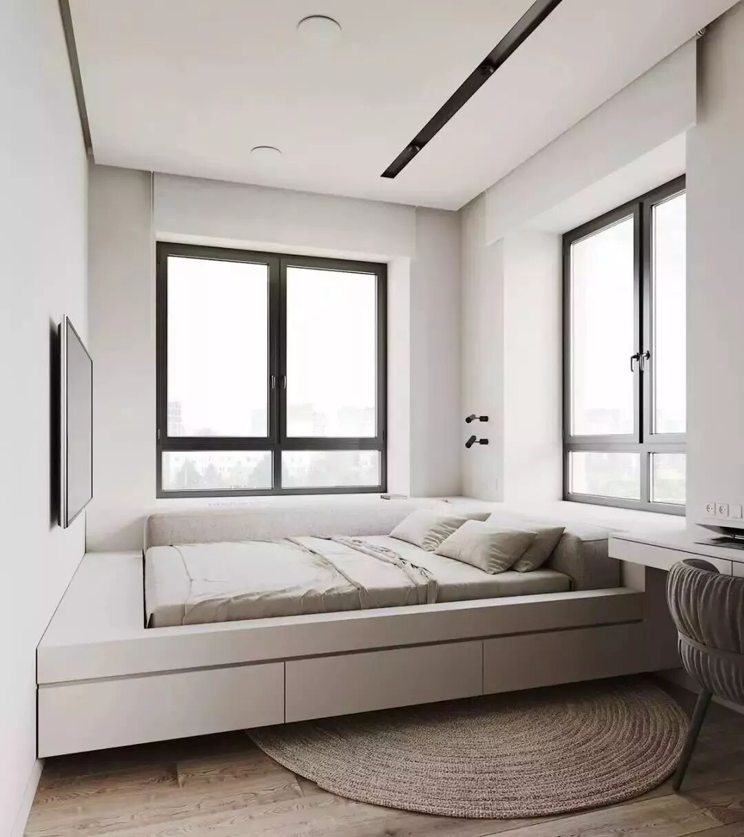 因此,在装修时预先留出越多越好的收纳空间很重要!具有收纳的地台床就是一个可以优先考虑的选择。