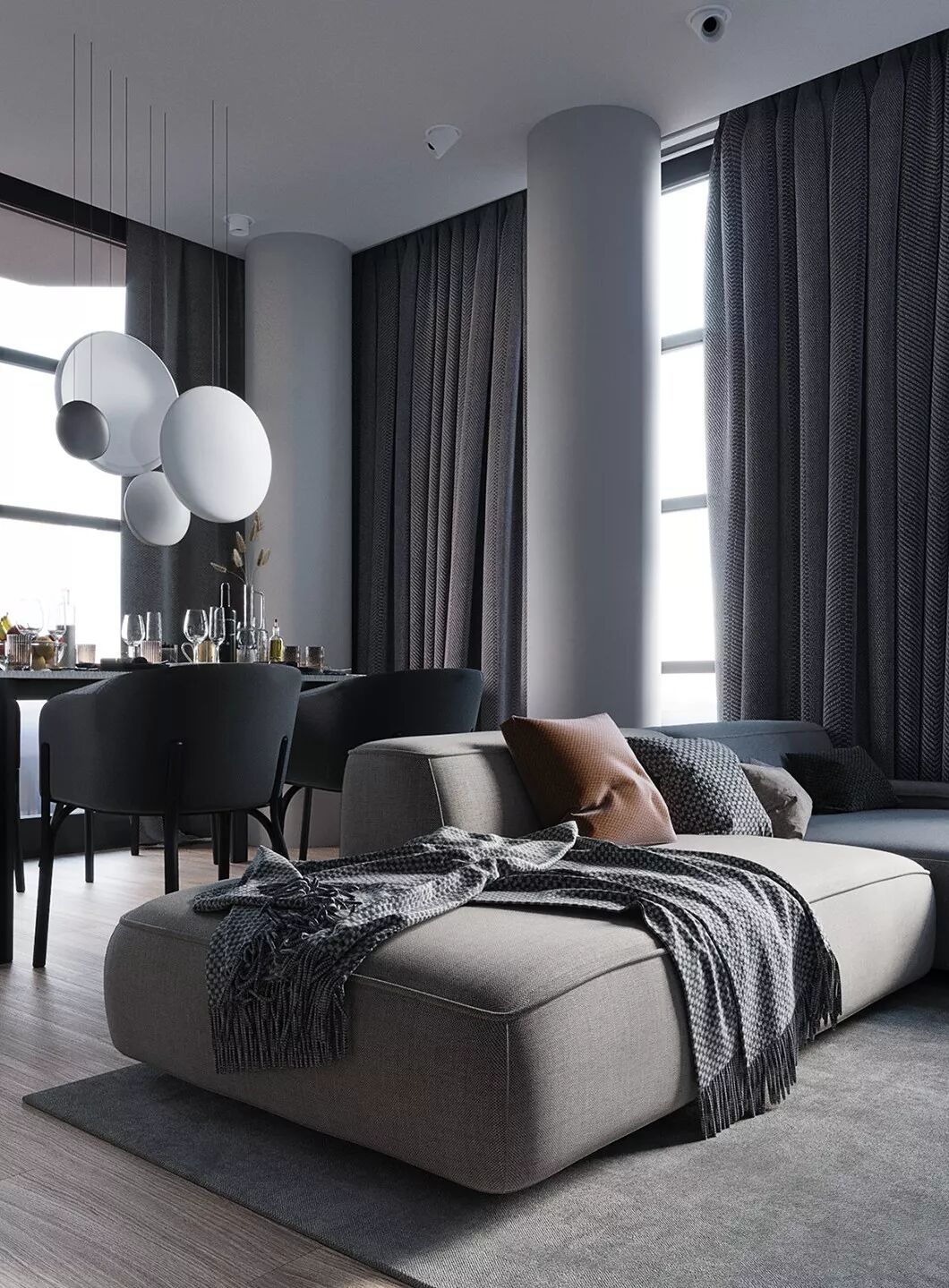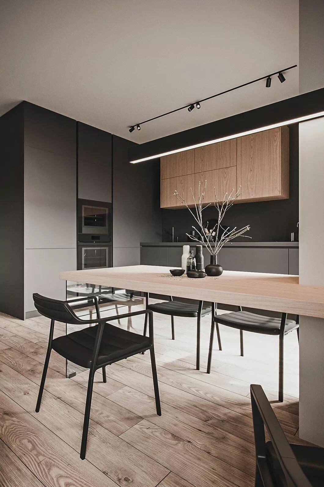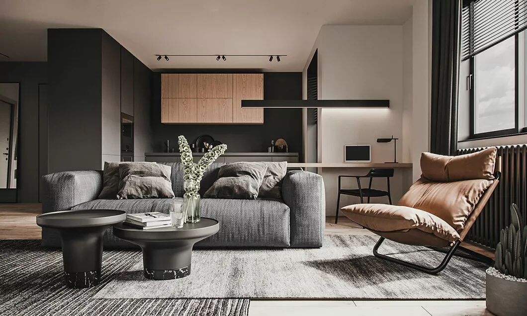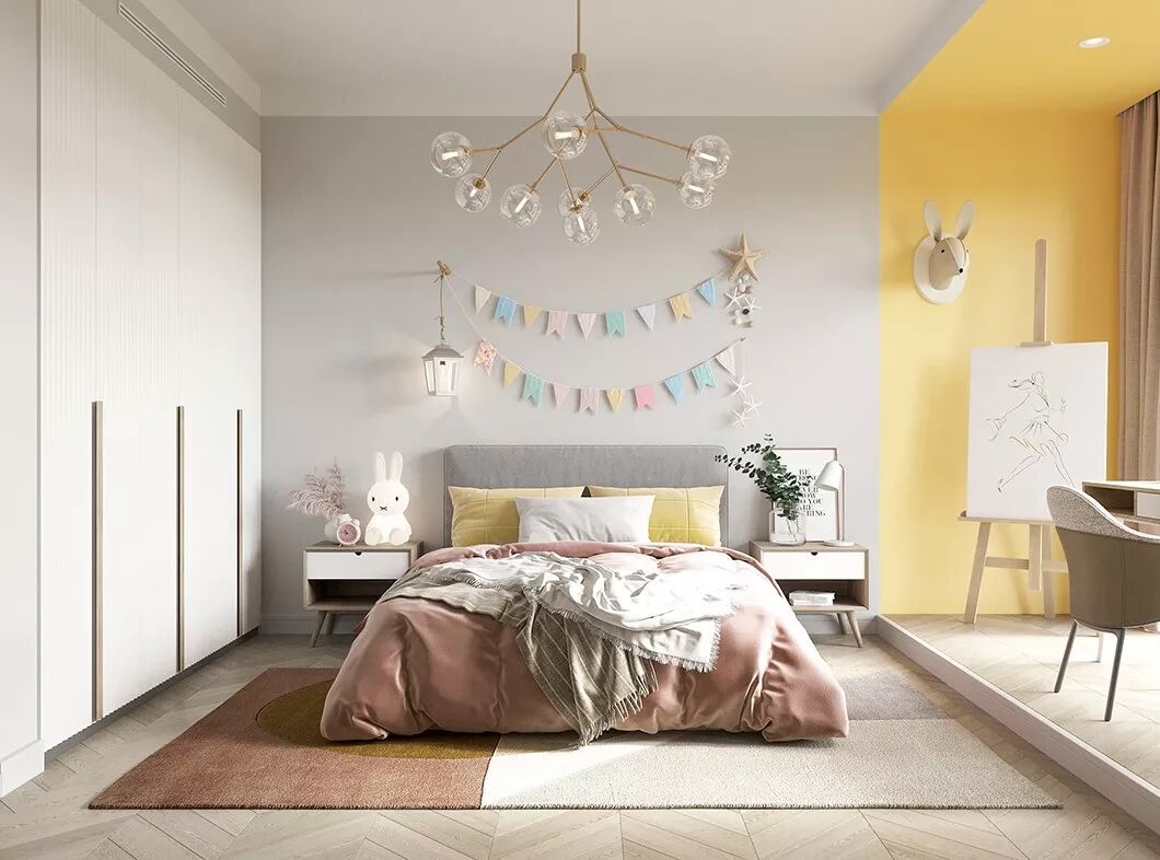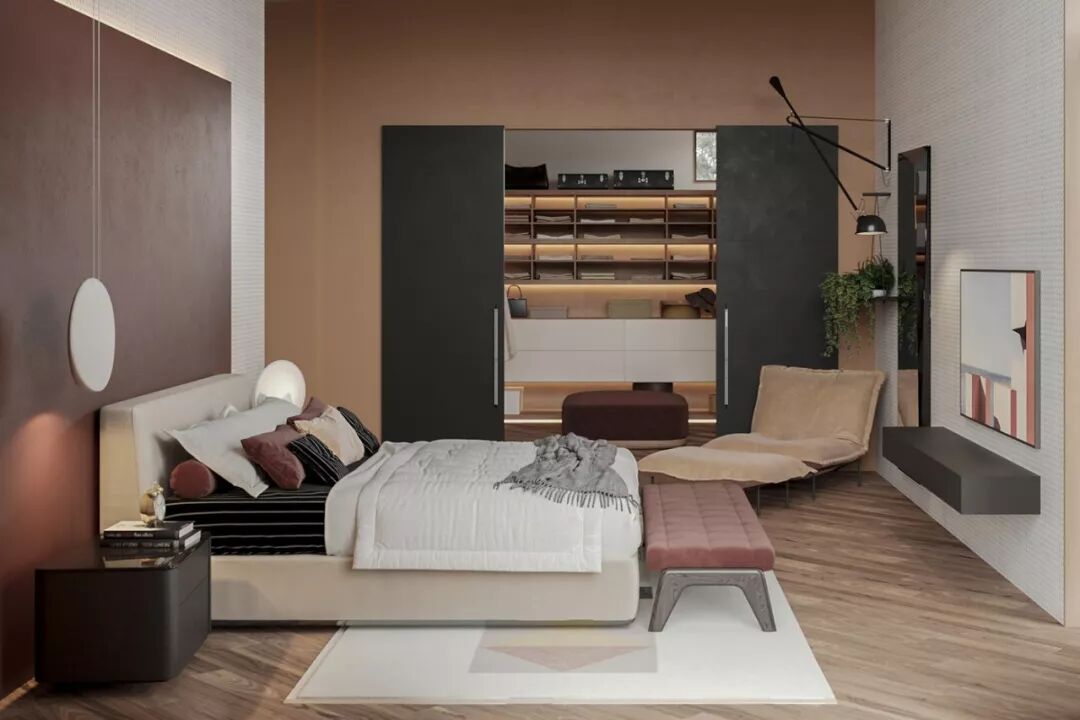 该案例的色彩搭配,以淡雅轻松的暖木棕与粉灰色营造一个自然、轻松的家居环境,建立与自然的连接,享受自然色彩带来的舒适与安心。具有强大的包容性及延展性,同时又体现了自由与深沉的一个空间平衡。