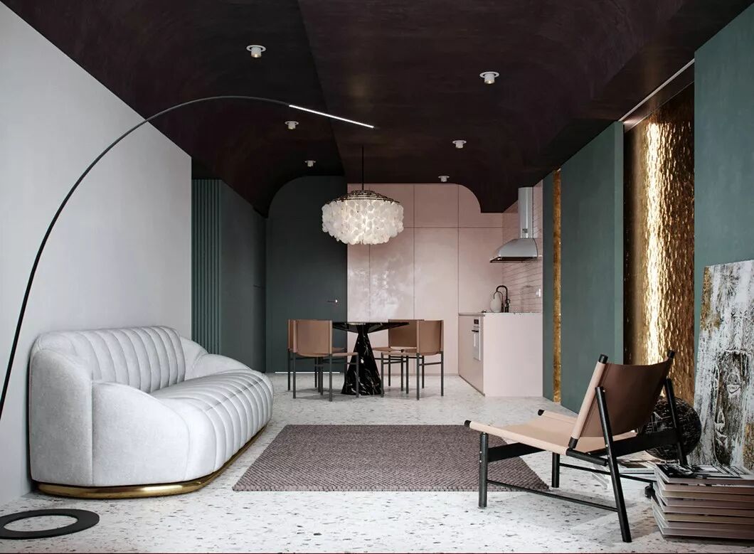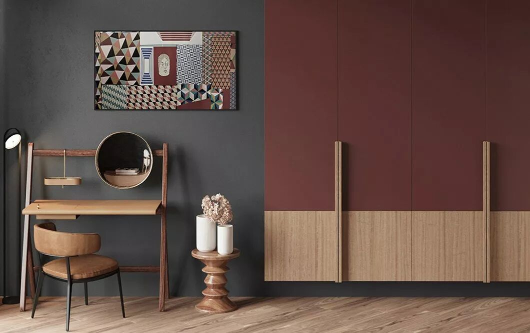 当暖木棕与深紫色、浅粉红色融合在一起的时候,呈现出一种深邃及安静的惬意,给身心带来暖暖的舒心,体现出治愈系的家的美好意境。