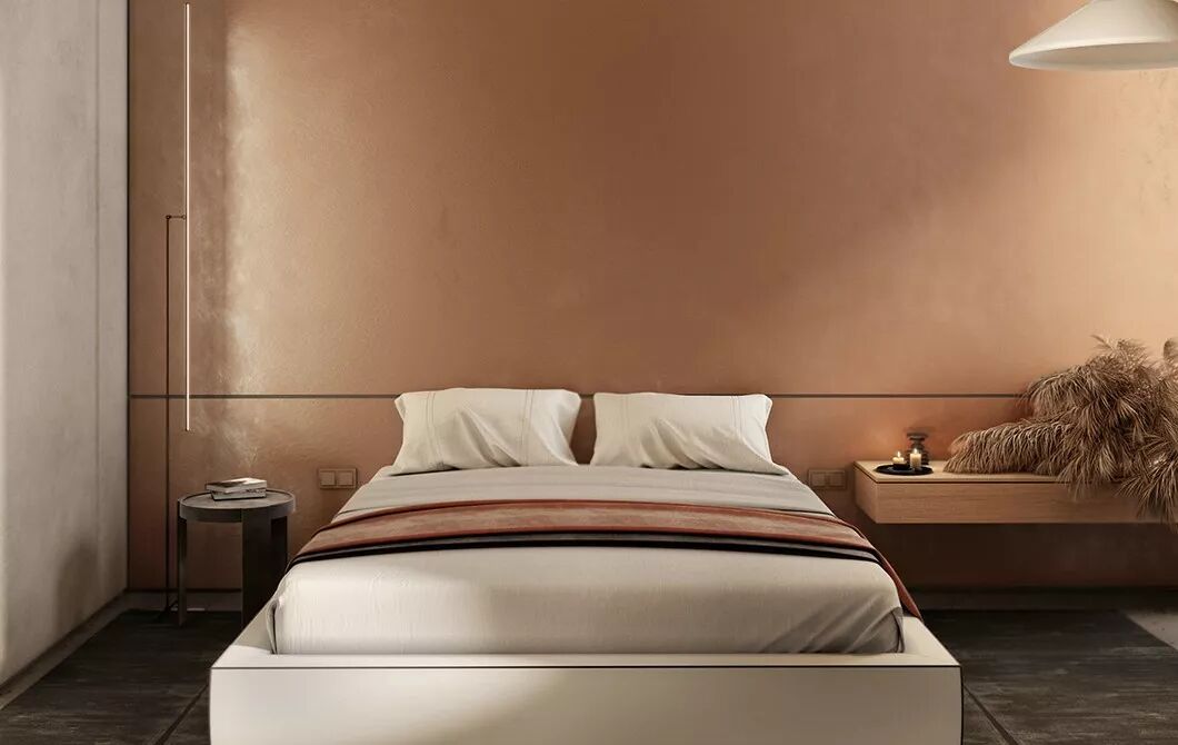 舒适惬意之家,将暖色的墙面及木色结合在一起,细腻的质感营造的是空间的平衡,这是一种源自自然色彩的设计哲学。温暖的土色纯朴而自然,给予心灵一丝暖暖的抚慰,陶土色及浅粉则让人感官愉悦。