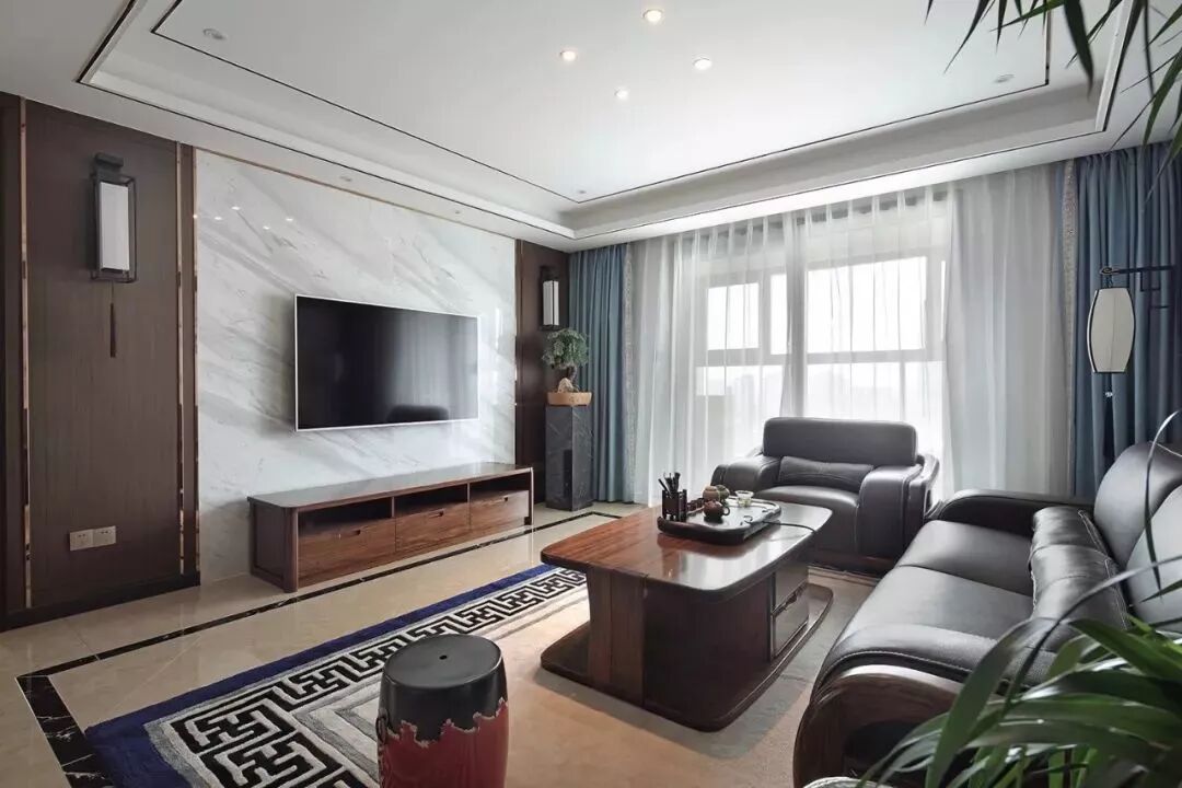 除了大理石之外,在电视背景墙的两侧可以再加上木饰面板、金属条、壁灯等作为点缀,来提升电视背景墙的颜值,点亮大理石的设计。