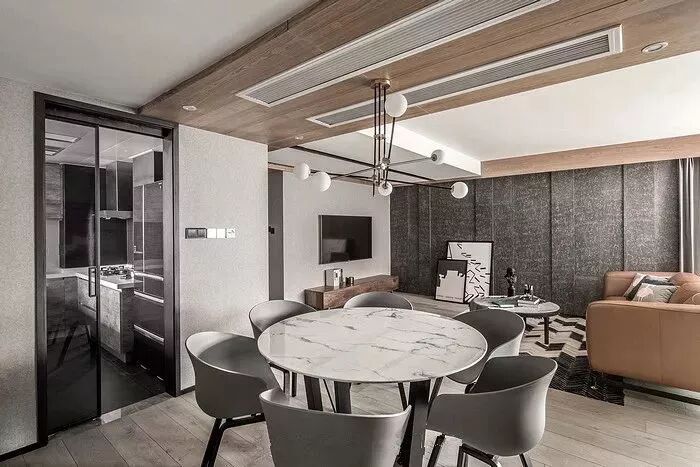 大理石也可以运用在餐厅内,作为餐桌面来使用,自带纹理的白色大理石就是餐厅最好的装饰品,也比较好搭配餐桌椅和吊灯等。