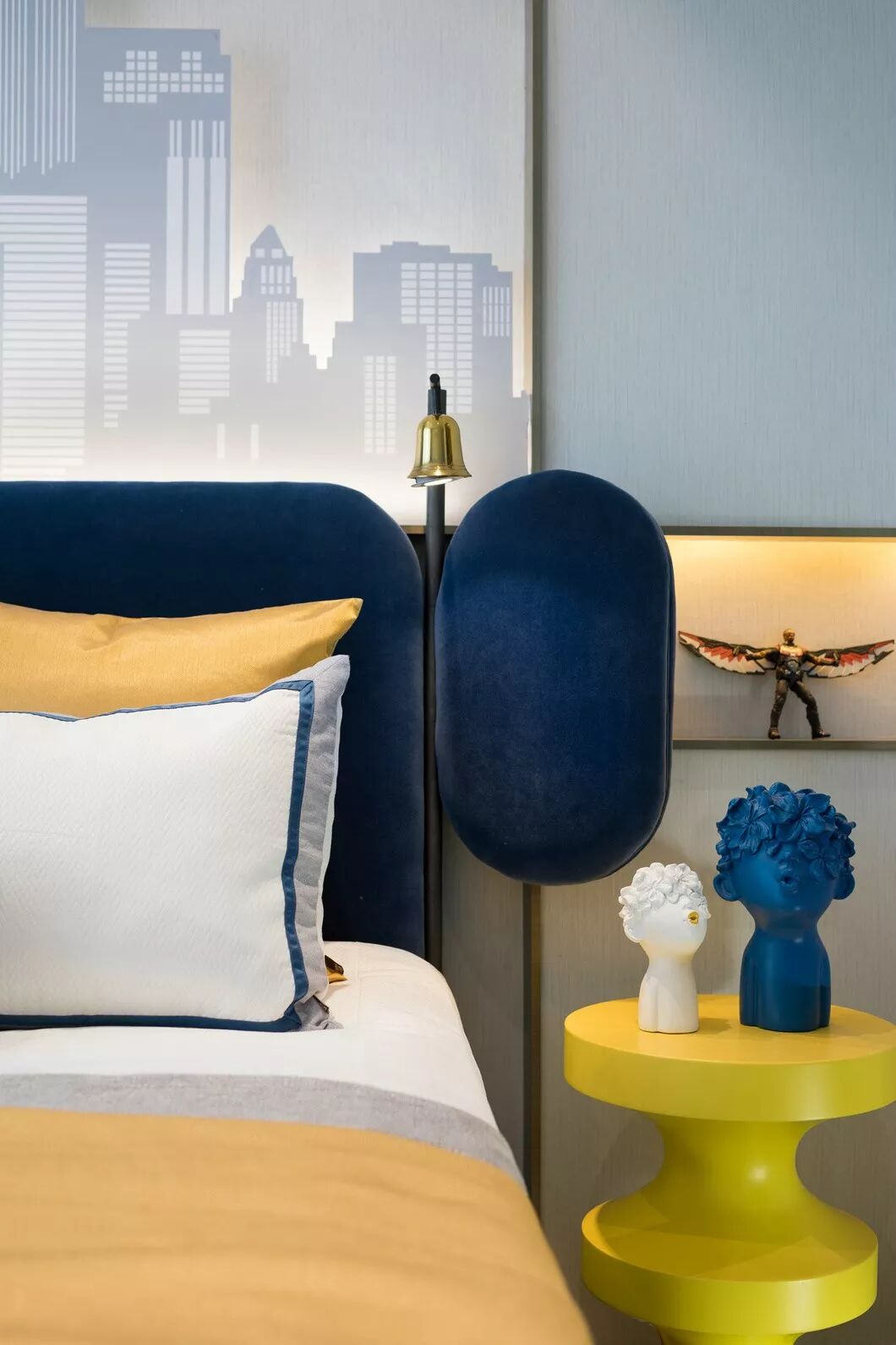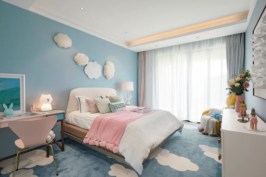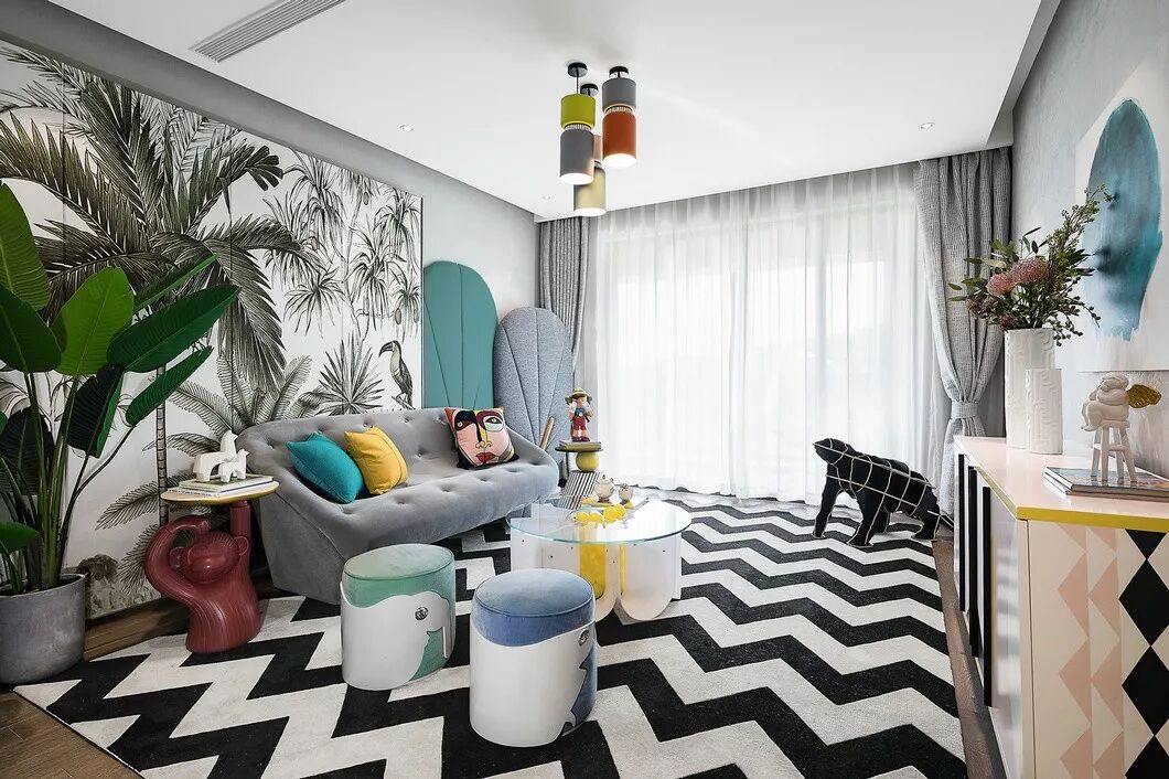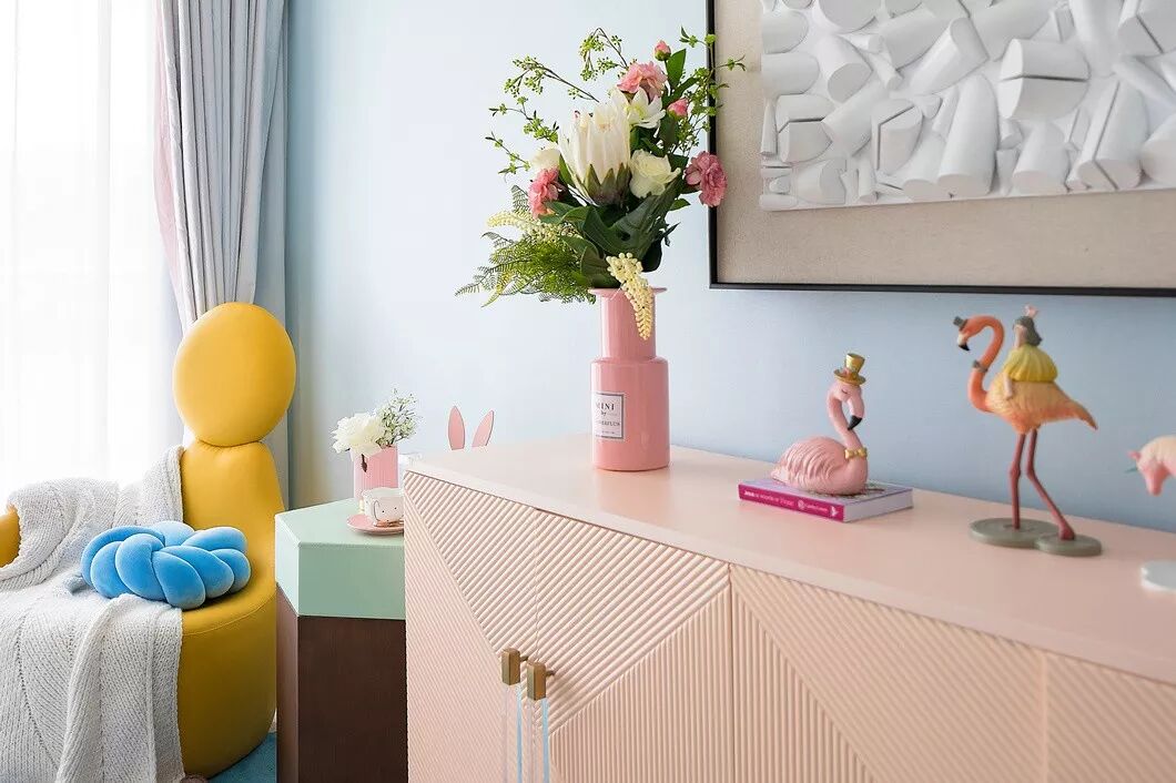 明亮柔和的整体色调,装饰性的表面纹饰,简洁现代的造型,以及极具感染力的艺术品都蓄意带来一种奇特而有趣的空间氛围。