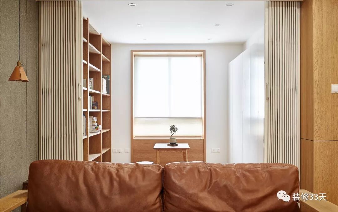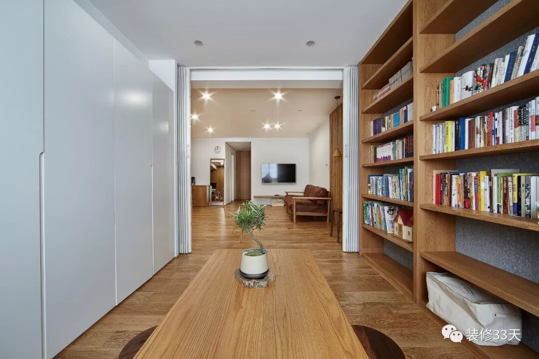 ▲ 沙发背后设计阅读区,通过折叠拉门作空间隔断