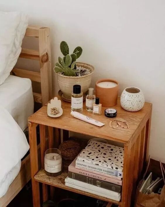 开放式床头柜用来收纳床头书是再好不过了,可以搭配书立或碗碟架实现竖立式收纳,书脊朝外,睡前轻松抽取。