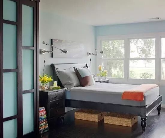 利用床底的位置,放几个收纳篮,把换季的鞋子塞进去,也是个不错的主意!