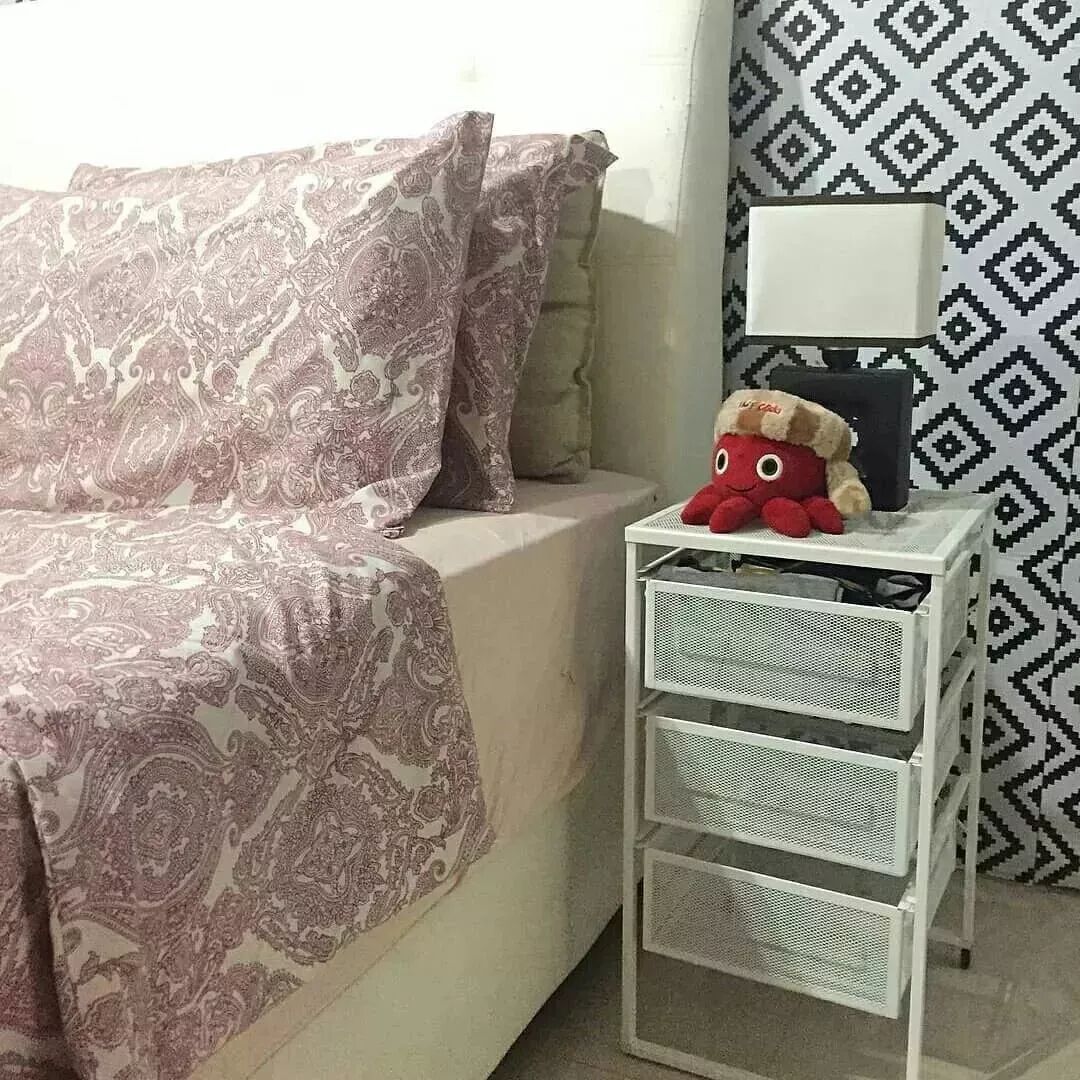 除了传统的木质床头柜外,轻便易拆卸的抽屉柜的也是好选择,不仅收纳空间充足,颜值也在线。